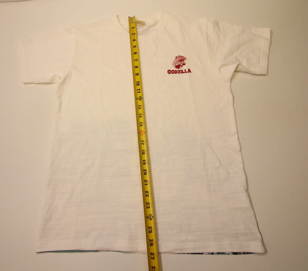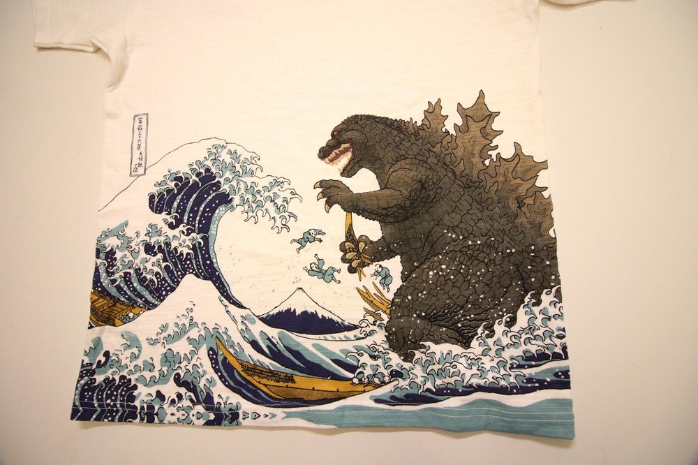 Untitled Document Heres my listing for a Godzilla Ukiyoe Tomo Co. Official Mt. Fuji Wave T-shirt Asia L Fits US Small. As you can see this tee is preowned in good condition. It is 100% Cotton has a slub cotton texture to it. I show pic with light shining through the fabric so you have an idea. Very cool back graphic mixing traditional Japanese artwork with Godzilla. The tag says L but fits smaller more like a US S. Because of that I'll put this as sz S which is closer to the Standard US sizing. Please go by the measurements. Godzilla sz L fits smaller Chest - (armpit to armpit)= 20" Length - 26-3/4" I personally take an immense amount of pride as a Ebay seller here for over 20 Years providing tons of detailed pictures, information and open communication to provide the best shopping experience I can. I take the time to include measurements in the images and in my detailed description which is something I look for when I personally shop here and online. I find that style of listing has become incredibly rare as if I'm one of the last ones still doing it. I want my customers to shop with confidence. So if you have any questions, comments or concerns please let me know. _____________________________________________ I will reserve my right to retract (0) rated bidders from my auction. I just prefer dealing with experienced buyers. Thanks As you can see from the shipping tab I accept all the common forms of payments. Shipping is typically through USPS and larger items through Fedex, UPS etc. I have a 1 day handling meaning packages are shipped out with updated tracking within 24hrs after payment. (IF Auction Listed) Buyer pays shipping and the winner of this auction should email so that shipping could be calculated IF NOT listed as flat fee. I'm willing to ship to buyers personal preference . I ACCEPT RETURNS. I want 100% of my buyers to be satisfied with their purchase. Thanks, and if this one is a auction listing, Good luck bidding!!