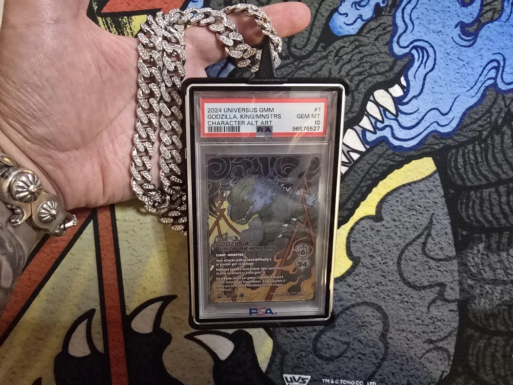 This Godzilla Universus Alt Art PSA 10 trading card is a must-have for any collector of non-sport trading cards. With its stunning design and high-grade quality, this card is sure to be a standout addition to your collection. The card features the iconic Godzilla franchise and is manufactured in 2024, making it a unique and rare find. The card has been professionally graded by the Professional Sports Authenticator (PSA) and has received a perfect grade of 10. It is a single trading card and is categorized as a collectible in the non-sport trading card category. Add this card to your collection today and showcase your love for the Godzilla franchise.
