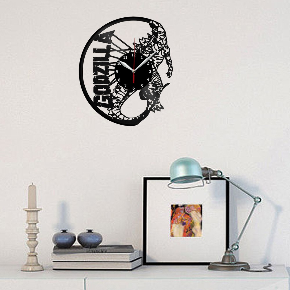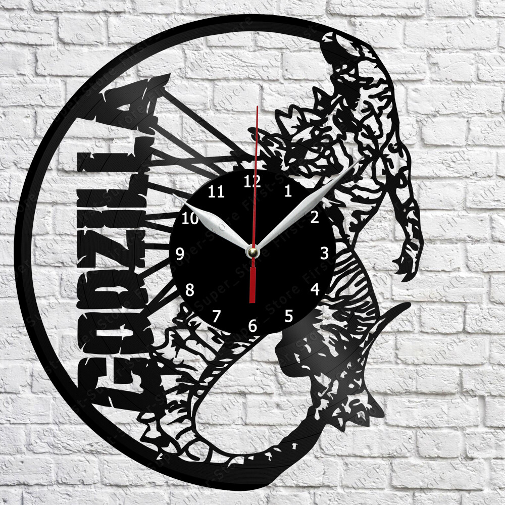 Godzilla Vinyl Record Wall Clock Condition: New Size: 12" (30cm) Material: vinyl record, built-in hanger, new movement quartz clock mechanism. Our clock mechanisms work quiet. * Requires 1 AA battery ...