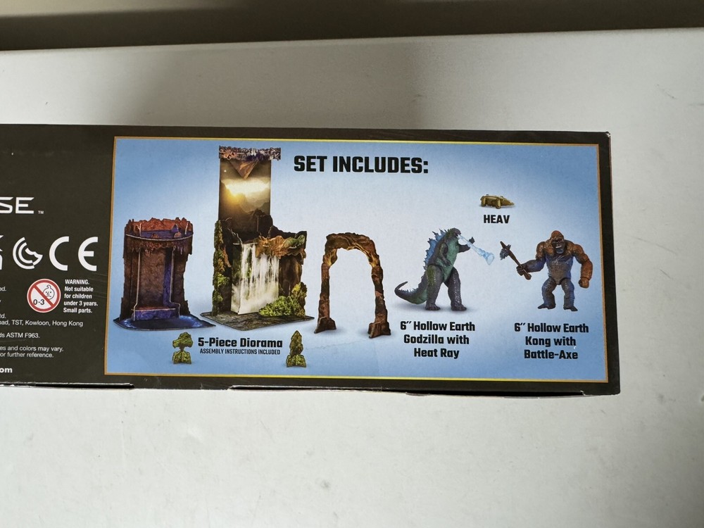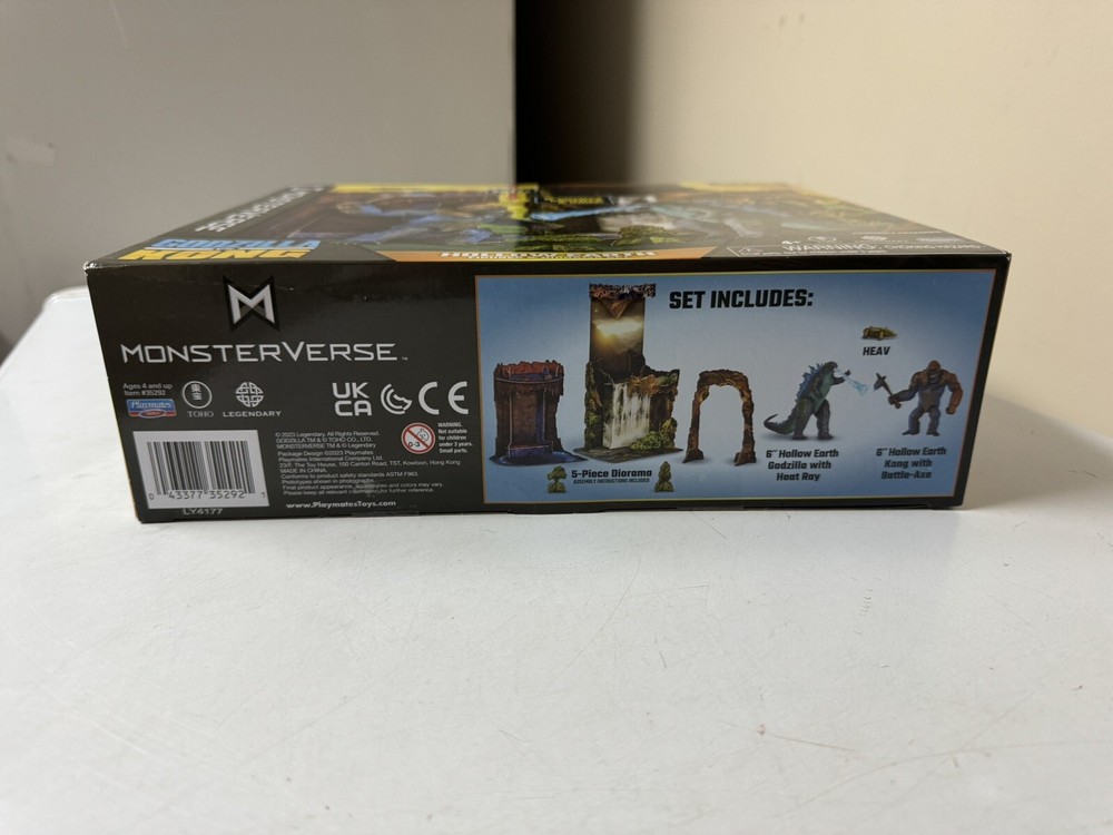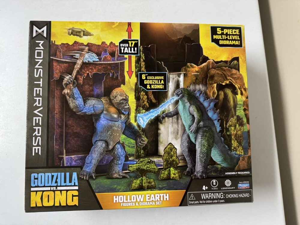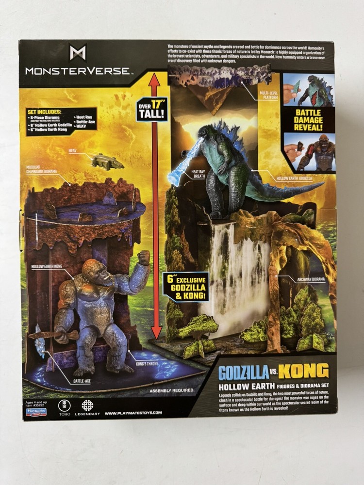 This Godzilla Vs. Kong Hollow Earth Diorama playset is produced by Playmates Toys and features exclusive 6” figures of both Godzilla & Kong. This specific set is designed around the theme of the Hollow Earth, along with a 5-piece diorama to create an immersive display. The figures are part of the Monsterverse franchise and are boxed for collectors or for play. Everything is brand new & sealed with fast shipping!