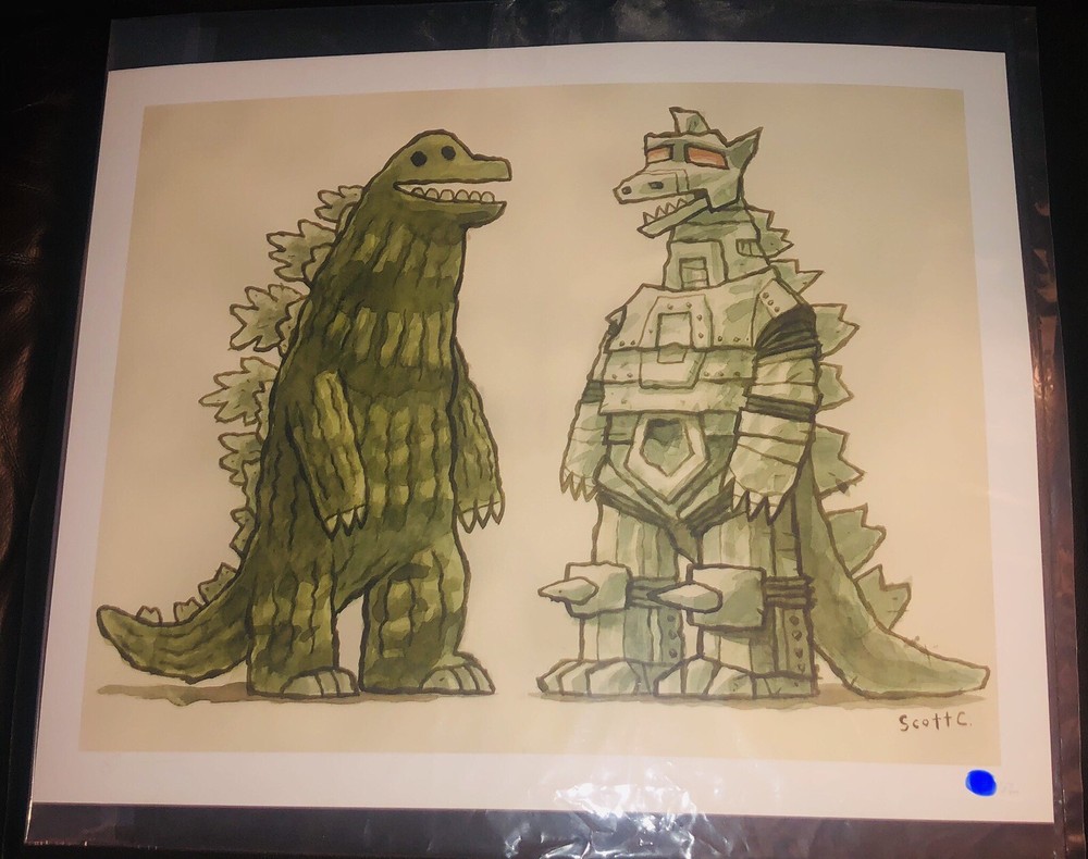 Welcome to my store! Up For Auction today is a Rare & Long Sold Out Scott C Campbell "Godzilla vs Mechagodzilla" art print. Print measures 16"x20" inches. Numbered xxx/162. Comes In wonderful condition ready for framing! Free USPS Ground Advantage shipping, insurance and tracking. Print will be packed with care, rolled in kraft paper, and put in a craft tube and then boxed for extra protection during shipping. We only use eBays global shipping program For international shipping. Look to my other auctions for other Rare Collectibles. If you have any questions about this Print feel free to ask. I have other Print, Art Toys, Funko, Urban Vinyl, Comic Con Exclusives and some of the rarest collectibles up for auction!! Thanks for stopping by!