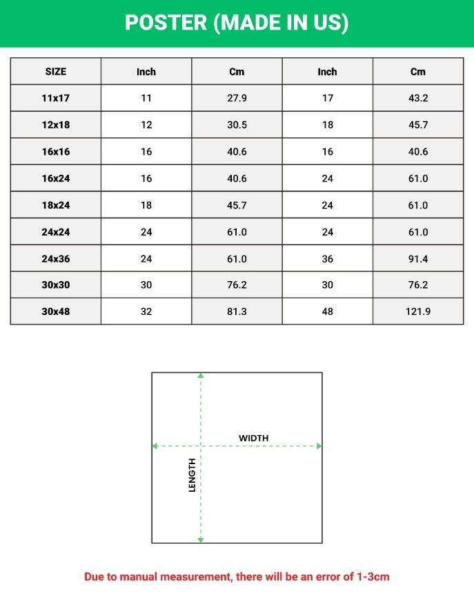 Make your room more colorful and add characters to your space with this simple custom Poster. Made from high-quality paper, our posters are perfect to hang on the wall. You can easily decorate any space from a party, bedroom, bathroom, kids room, living room, office, dorm, and more with our print poster. I also accept printing on demand - High-quality resin-coated photo base paper. - Smooth surface, maximum color gamut, dmax, and image resolution. - Heavyweight (230 gsm); 9 mil base. - Wrapped in protective tubes. *FRAME NOT INCLUDED* Please note colours can be less vibrant on print than what you see on screen for obvious reasons but please be assured all are printed to the hights quality. This Print comes in 4 ready-to-frame sizes: 12"x18" 16"x24" 24"x36" 32"x48"