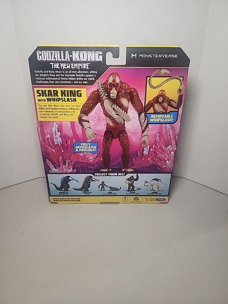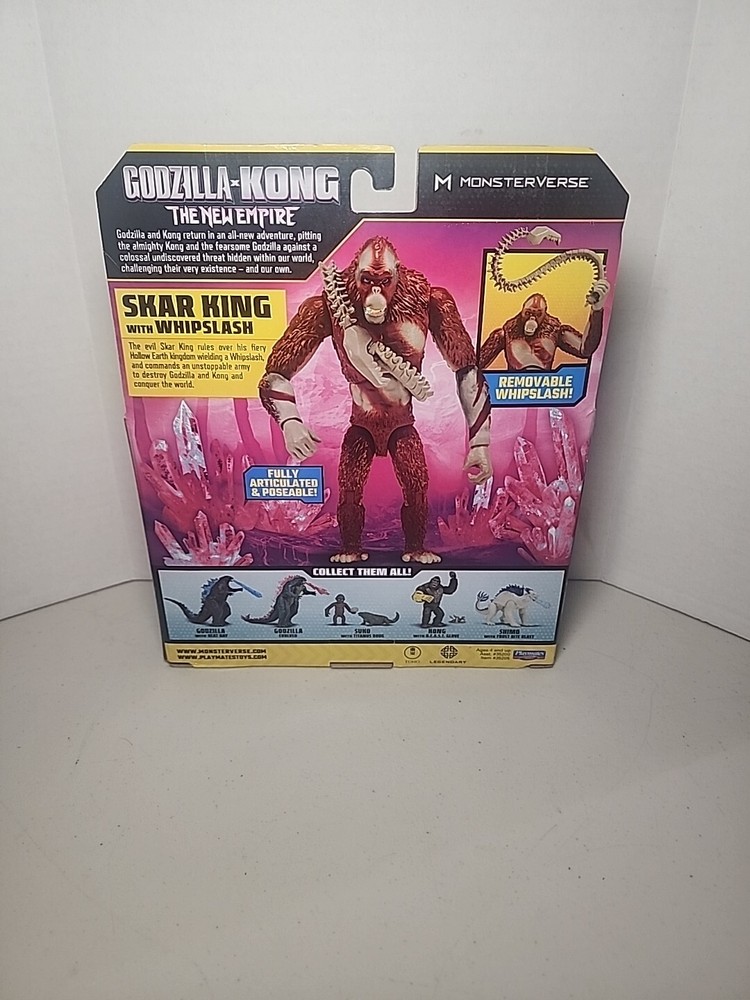 Introducing the Godzilla X Kong New Empire Skar King 6" Figure Playmates 2024, a must-have for fans of the King Kong franchise. This action figure is made of high-quality ABS plastic and features an adjustable design, making it perfect for children aged 3-4 years. The figure comes boxed and is an original, licensed reproduction from Playmates Toys. With a scale of 6 inches, this Godzilla X Kong figure is the perfect addition to any collection of TV, movie, and video game-themed toys. The figure is set in the year 2024 and is part of the Godzilla and King Kong franchises. It is a great gift for any fan of these iconic characters and is sure to be a hit with collectors alike.