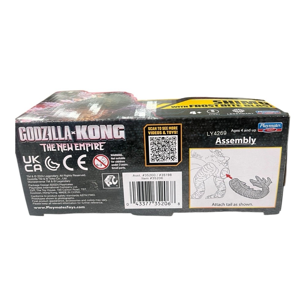 Experience the epic battle of Godzilla and Kong with the new 6-inch SHIMO action figure from Playmates. This highly detailed figure features a Frost Bite Blast and is perfect for fans of the Godzilla franchise. With a recommended age range of 4 and up, this toy is sure to provide hours of fun for collectors and kids alike. This figure is part of the Godzilla X Kong: The New Empire line and is manufactured in China. It is an excellent addition to any collection and is sure to be a hit with fans of the series. Don't miss your chance to add this incredible SHIMO action figure to your collection today!