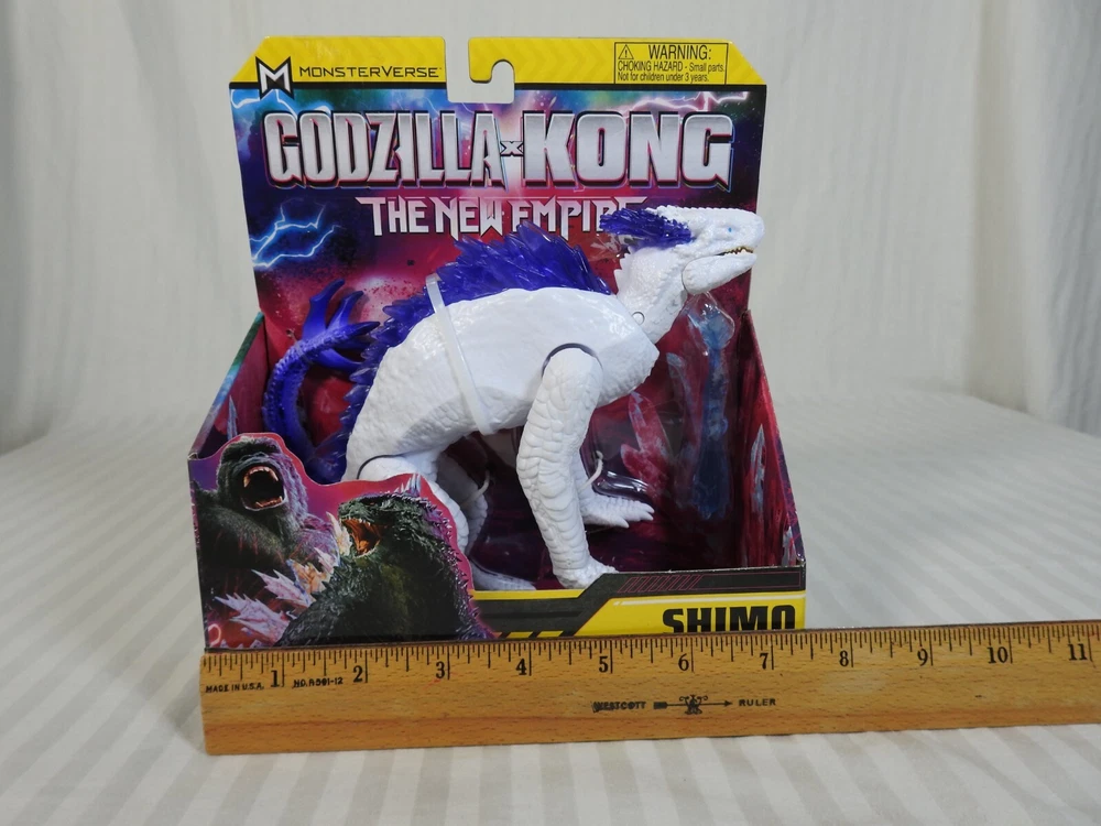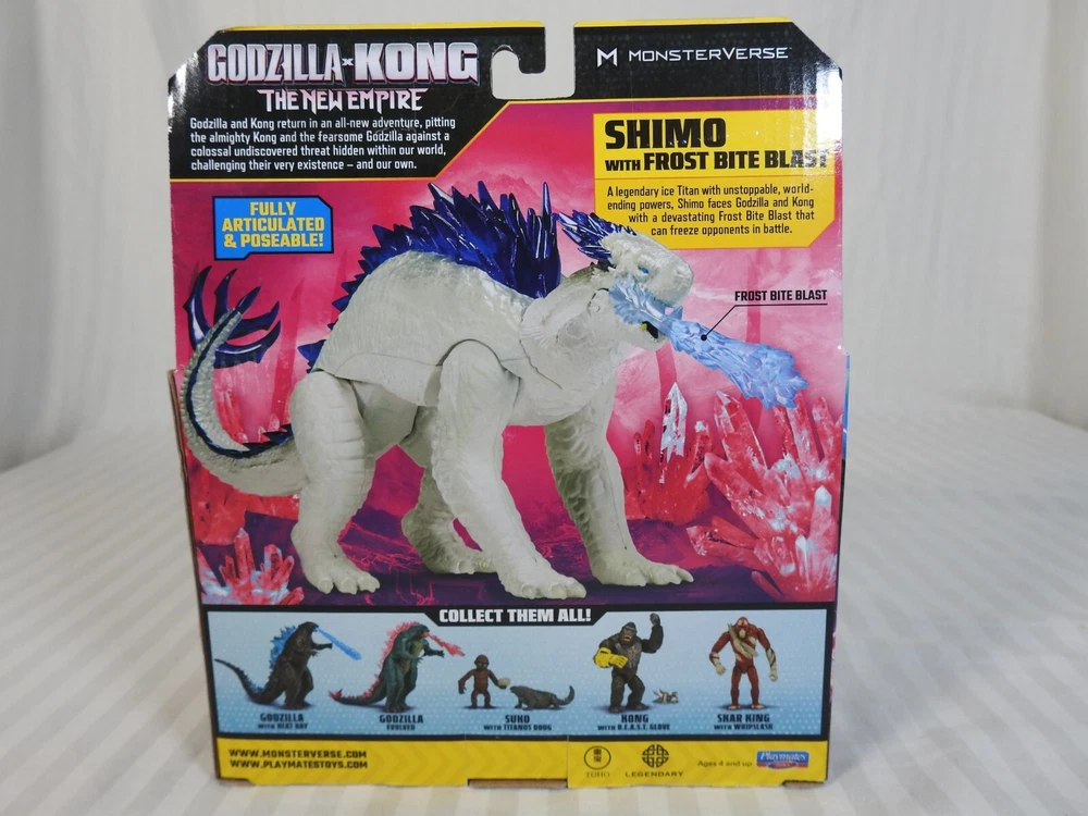 ****Please examine each photo provided closely before making a purchase. Thank you.**** ~ Godzilla X Kong, The New Empire Shimo w/ Frostbite Blast Figurine Toy. - Brand: Monster Verse. - Moveable joints, head, and mouth. - Color: White with blue spikes and tail. - Item #: 35206. Asst #: 35200 / #35198. LY4155. (Marked on bottom of box) - Ages 4 and Up. ~ Condition : - NEW IN BOX. Excellent condition. - No damage observed. - There are a few yellow discoloration marks on the front arm. (pictured) ~ COMES FROM A NON-SMOKING HOME.