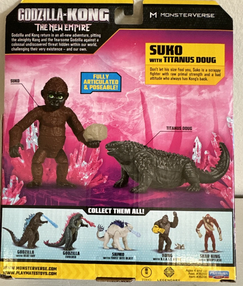 Introducing the Godzilla X Kong The New Empire Suko With Titanus Doug 4" Figure Playmates Toys, a must-have for fans of the Monsterverse. This action figure features intricate details and is made of high-quality plastic, making it durable and perfect for display. The figure is part of the 1:12 scale model, titled "Monsterverse Godzilla X Kong New Empire", and is an original licensed reproduction. The Godzilla X Kong The New Empire Suko With Titanus Doug 4" Figure Playmates Toys is perfect for collectors and fans alike, featuring the popular characters Suko, King Kong, Doug with Titanus Doug, and Titanus Doug. The action figure is designed for children aged 4+ and is part of the TV show "Godzilla X Kong". This item is a great addition to any collection and is sure to impress. § I am a trusted long-time seller with excellent feedback. § Ships quickly! § All item brands are Authentic or your money back! § I stand by every one of my items and will do what it takes to make your shopping experience right! § I offer No Hassle returns and fast shipping! § Packaging counts and all items are neatly packaged and secured to ensure your purchase arrives to you just as you expected it. § Great brands at great discounts. New items are added daily. § Thank you for browsing my listings and your continued support.
