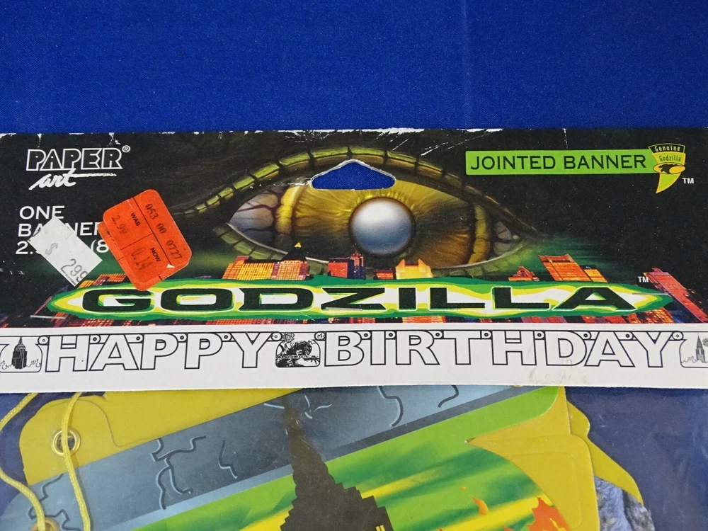 Godzilla king of the monsters man cave happy birthday jointed Banner Vinyl 8.5'. Condition is New, sealed. Check out the pictures. Questions, please ask. Thanks for looking. By Paper Art. Vintage.