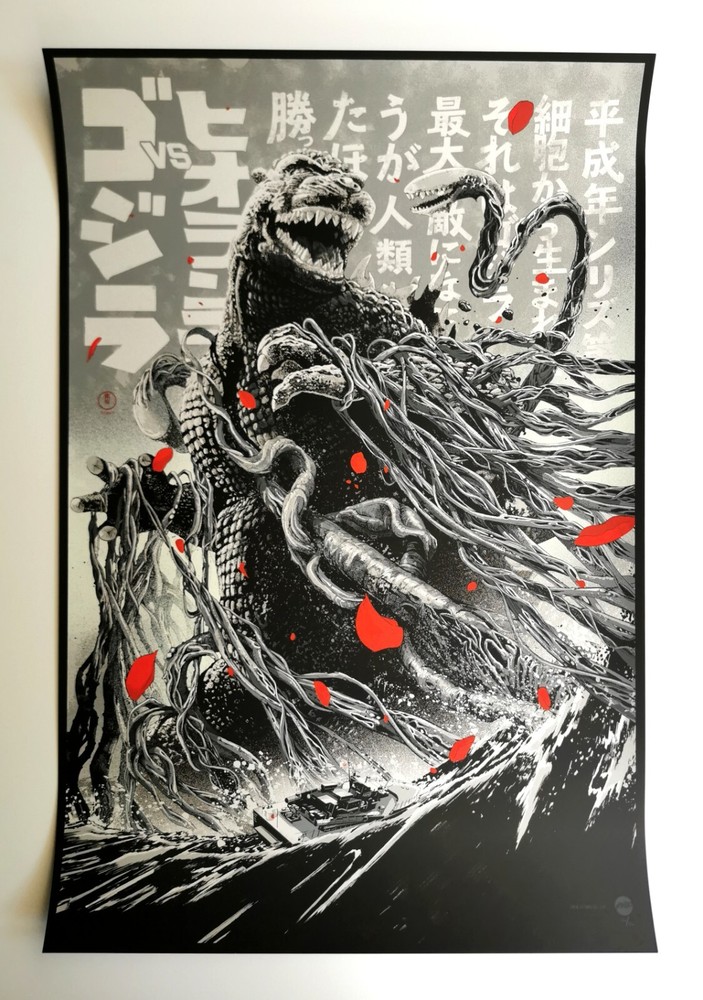 This Godzilla vs Biollante variant by Shan Jiang is a limited edition screen print featuring metallic inks and a numbered certificate of authenticity. The artwork is done in ink on paper, with a portrait orientation and a size of 24x36 inches. The print is an original, not a licensed reprint, and was produced in 2021 using screen printing techniques. The subject of the print is Godzilla, Toho, and Biollante, and it falls under the categories of Art and Art Prints. The artwork style is Illustration Art, and it is a perfect addition for collectors of movie-themed art. The print is an original production technique, and it was produced in 2020-Now. This Godzilla vs Biollante variant is a must-have for fans of the iconic movie monsters, and it is a rare find for any art collector.