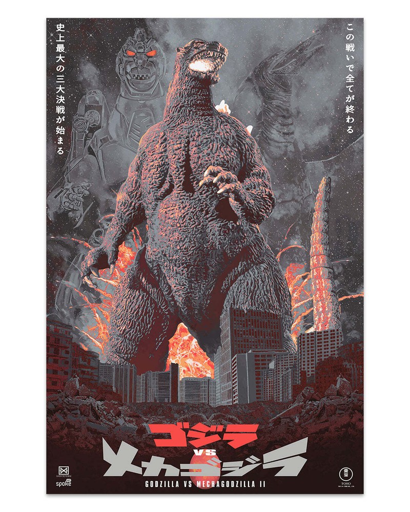 Godzilla vs. Mechagodzilla II An official, limited edition print by artist Dakota Randall Edition: Limited Edition of 150 Technique: archival pigment print Dimensions: 24" x 36" Markings: hand-numbered Mint condition; stored flat in an archival sleeve. From the 1993 film Godzilla vs. Mechagodzilla directed by Takao Okawara, Kazuki Omori and starring Masahiro Takashima, Ryoko Sano, Megumi Odaka, Yusuke Kawazu.