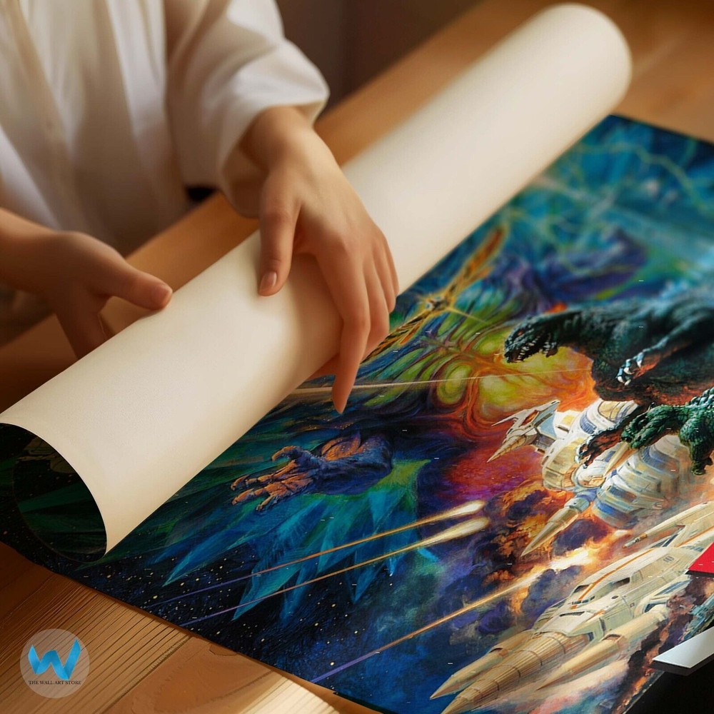 This poster is a must-have for any Godzilla fan! The artwork is vibrant and detailed, perfectly capturing the epic battle between Godzilla and SpaceGodzilla. The high-quality print on Epson paper makes the colors pop, and it looks fantastic in any room. Whether you're a collector or just love sci-fi, this poster delivers. The multiple size options are a nice touch, so you can choose what fits your space best. Definitely worth adding to your collection!