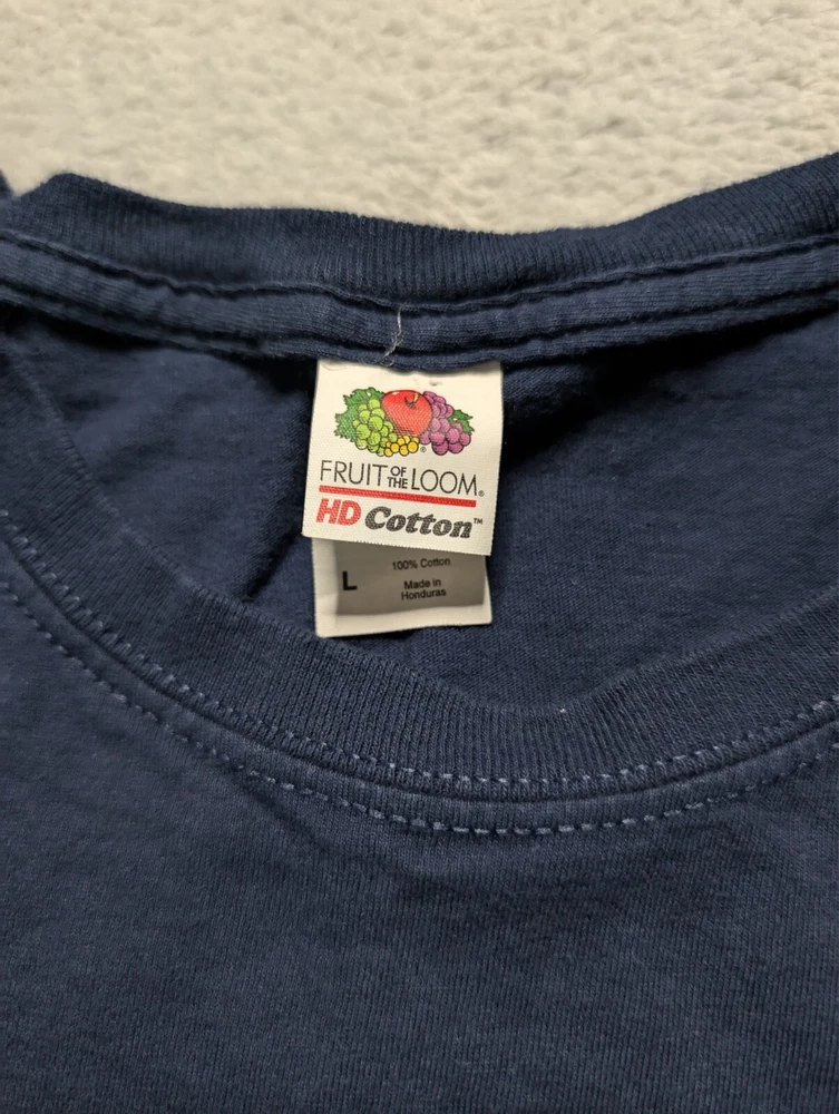 This wild and humorous t-shirt features an epic mashup of Godzilla and the Stay Puft Marshmallow Man, casually holding hands while watching a city burn! A quirky design sure to catch attention, this navy blue shirt by Fruit of the Loom is perfect for fans of pop culture mashups or just for adding some fun to your wardrobe. Key Features: ⦁ Brand: Fruit of the Loom ⦁ Model: HD Cotton Graphic T-Shirt ⦁ Design: Godzilla & Stay Puft Mashup Graphic ⦁ Functionality: Short sleeve, 100% cotton ⦁ Condition: Pre-owned, excellent condition Additional Details: ⦁ Size: Large ⦁ High-quality print with vibrant yellow tones ⦁ Fun and quirky design Shipping: ⦁ Ships within 1 business day ⦁ Safe and securely packaged ⦁ Returns accepted within 30 days Add some humor and epicness to your collection with this wild mashup tee! Feel free to contact me with any questions or for more details!