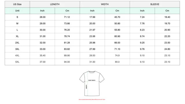 WELCOME TO MY STORE DESCRIPTION This heavy cotton tee has the classic cotton look and feel. Casual elegance will make it an instant favorite in everyone's wardrobe. FEATURES Unisex Heavy Cotton Tee ( 5000) Classic fit 100% Cotton (fibre content may vary for different colors) Light fabric (5.3 oz/yd� (180 g/m�)) Tear away label Runs true to size Shipping Information LOCAL SHIPPING (printed in US) USA - Shipping up to 3 - 7 business days INTERNATIONAL SHIPPING (printed in Germany or Czech Republic) Germany or Czech Republic - Shipping up to 3 - 7 business days Europe - Shipping up to 7 - 14 business days Other Country - Shipping up to 14 - 30 business days SIZE CHAT # S M L XL 2XL 3XL 4XL 5XL Width, in 18 20 21.97 23.98 25.99 28 30.04 31.97 Length, in 28.51 29.49 30.52 31.5 32.52 33.51 34.49 35.52 Sleeve length, in 7.52 7.76 8.23 8.75 9.26 9.77 10.24 10.75 Thanks for Shopping!