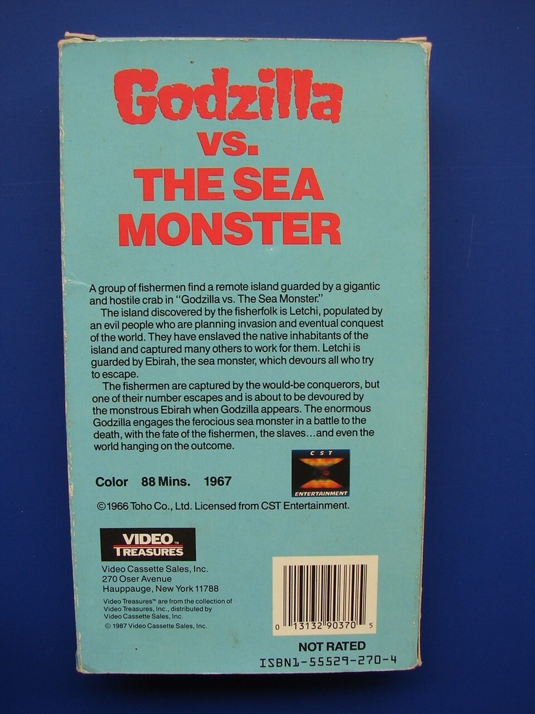 Dive into the classic sci-fi horror action with the "Godzilla vs The Sea Monster (1967)" VHS cassette tape. This treasured addition from Video Treasures, released in 1987, brings the epic battle between the King of Monsters and a gigantic hostile crab to your home video collection. Enjoy the nostalgic charm of this cult classic, rated NR for Not Rated, and experience the thrills in English. This VHS is a must-have for aficionados of the genre, with a storyline that perfectly captures the essence of 1960s monster movies. It's a genuine piece of cinematic history, proudly manufactured in the United States, and offers a glimpse into the cult that has followed these iconic creatures for decades.