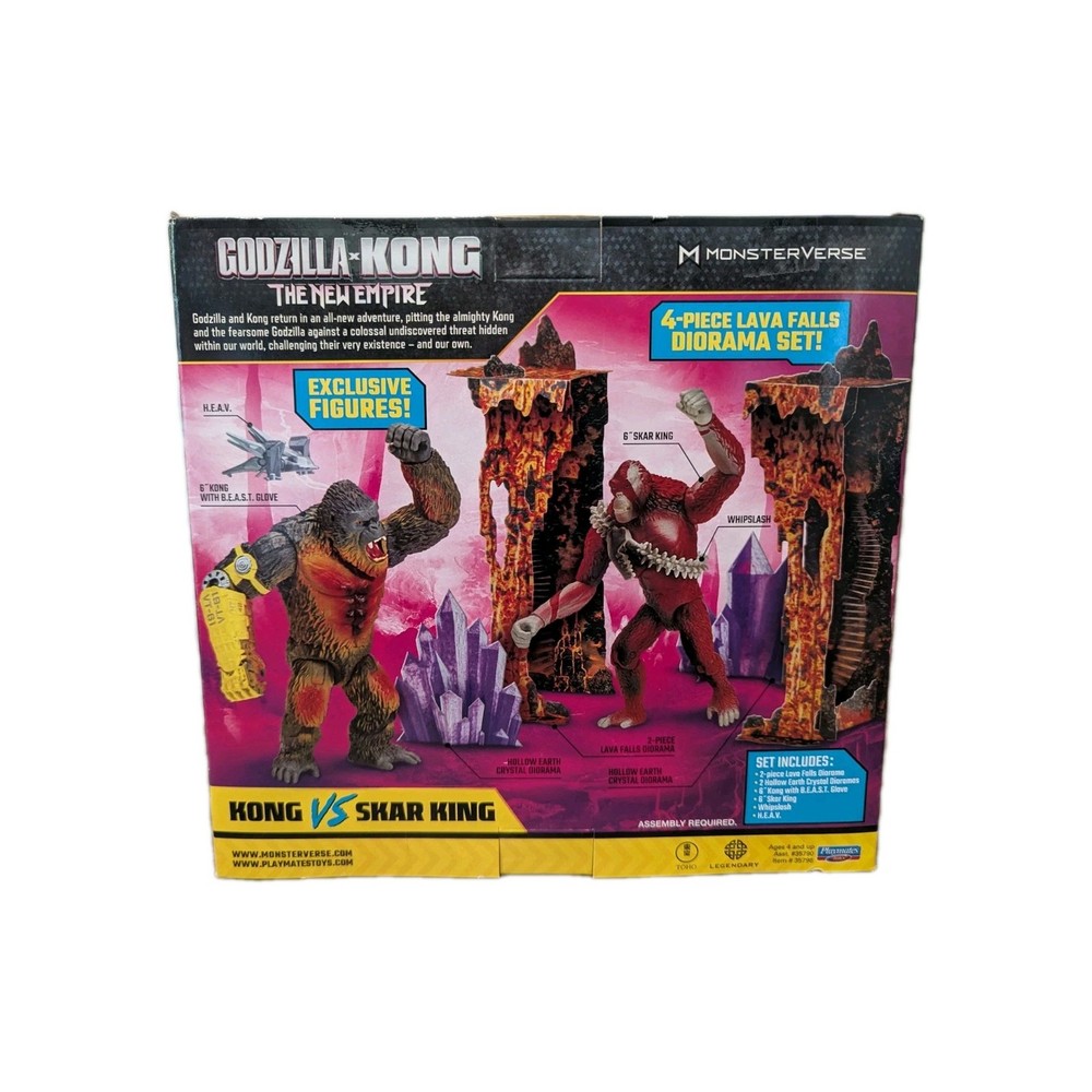 About this item Godzilla vs. Kong Collectible 4+ Action Figures, Multicolor, 3.50" x 9.50" x 9" Authentic Design: These Godzilla x Kong 6" figures feature highly detailed designs with exclusive decoration that captures the essence of Kong and Skar King, ensuring an authentic representation of their iconic characters Accessories Included: Enhance your playtime or display with Kong’s H.E.A.V. Vehicle and Skar King’s menacing Whipslash, each featuring exclusive detailing for added realism Scene Creation: Build your own Hollow Earth with exclusive diorama set pieces inspired by the new Godzilla x Kong movie, allowing you to recreate your favorite battle scenes Movie Packaging: The figures are packaged in bright, bold Godzilla x Kong packaging, inspired by the fearsome Hollow Earth landscape from the film Collectible Series: Complete your collection with other figures and accessories from the Godzilla x Kong line, featuring a variety of characters to recreate epic battles and adventures in the MonsterVerse