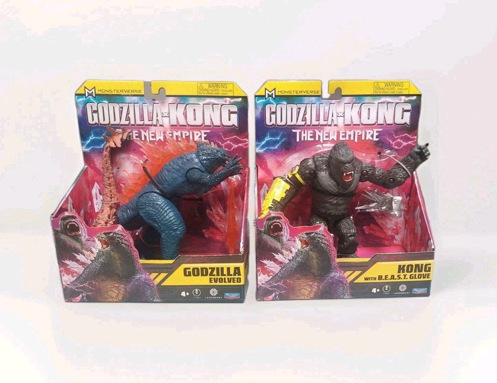 🆕 Godzilla x Kong - The New Empire: Godzilla Evolved with Heat Ray and Kong with B.E.A.S.T. Glove 6" Action Figures. Condition: New Standard Shipping, usually ships within 2 business days or less Included in the Lot: 2 Action Figures , individually packaged UPC: 043377352020 - Godzilla Evolved, 043377352044 - Kong with B.E.A.S.T Glove Godzilla Evolved: Return to Hollow Earth with Godzilla and Kong in an all-new adventure! When a colossal threat is discovered within our world, Godzilla and Kong must fight to protect their existence—and our own. The Godzilla x Kong 6” Godzilla Evolved brings the King of Monsters to your collection, with epic new details that capture his evolved form. Set includes Godzilla’s Heat Ray power and comes in a unique Godzilla X Kong package! AUTHENTIC: The Godzilla x Kong 6” Godzilla Evolved figure is highly detailed with intricate designs to capture the essence of the King of Monsters in his evolved form. From his powerful Heat Ray to imposing figure, every detail is made to match the new movie, ensuring an authentic representation of his iconic character HEAT RAY: Bring the action home with Godzilla’s destructive Heat Ray power! Place the detachable Heat Ray in his mouth to release the iconic atomic breath, adding a realistic element to your playtime or display BATTLE POSES: Standing 6” tall, the Godzilla Evolved figure is ready to reign over any display or play setting. With multiple points of articulation, Godzilla is ready for action, so you can recreate your favorite scenes from his epic battles COLLECT THEM ALL: Complete your monstrous collection with other figures and accessories from the new Godzilla x Kong line. Choose from a wide range of characters, including old allies, dangerous foes, and new challengers to recreate epic battles and awesome new adventures! Build your very own MonsterVerse with Playmates Toys Kong with B.E.A.S.T Glove: Return to Hollow Earth with Godzilla and Kong in an all-new adventure! When a colossal threat is discovered within our world, Godzilla and Kong must fight to protect their existence—and our own. The Godzilla x Kong 6” Kong brings the King of Skull Island to your collection, with epic details that capture his new movie look. Set includes Kong’s B.E.A.S.T. Glove and comes in a unique Godzilla X Kong package! The Godzilla x Kong 6” Kong figure is highly detailed with intricate designs to capture the essence of the King of Skull Island. From his destructive B.E.A.S.T. Glove to imposing figure, every detail is made to match the new movie, ensuring an authentic representation of his iconic character. Bring the action home with Kong’s destructive B.E.A.S.T. Glove. The B.E.A.S.T. Glove is highly detailed to match his movie design, adding a realistic element to your playtime or display. Standing 6” tall, the Kong figure is ready to reign over any display or play setting. With multiple points of articulation, Kong is ready for action, so you can recreate your favorite scenes from his epic battles. Complete your monstrous collection with other figures and accessories from the new Godzilla x Kong line. Choose from a wide range of characters, including old allies, dangerous foes, and new challengers to recreate epic battles and awesome new adventures! Build your very own MonsterVerse with Playmates Toys. AUTHENTIC: The Godzilla x Kong 6” Kong figure is highly detailed with intricate designs to capture the essence of the King of Skull Island. From his destructive B.E.A.S.T. Glove to imposing figure, every detail is made to match the new movie, ensuring an authentic representation of his iconic character GLOVE ACCESSORY: Bring the action home with Kong’s destructive B.E.A.S.T. Glove. The B.E.A.S.T. Glove is highly detailed to match his movie design, adding a realistic element to your playtime or display BATTLE POSES: Standing 6” tall, the Kong figure is ready to reign over any display or play setting. With multiple points of articulation, Kong is ready for action, so you can recreate your favorite scenes from his epic battles COLLECT THEM ALL: Complete your monstrous collection with other figures and accessories from the new Godzilla x Kong line. Choose from a wide range of characters, including old allies, dangerous foes, and new challengers to recreate epic battles and awesome new adventures! Build your very own MonsterVerse with Playmates Toys .
