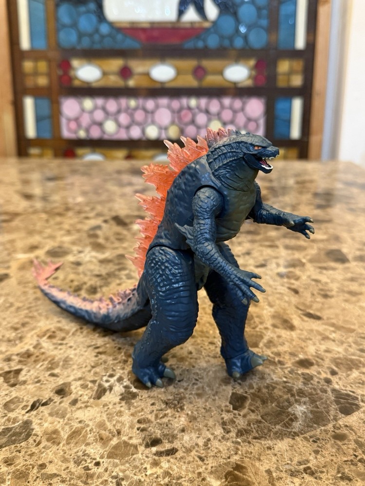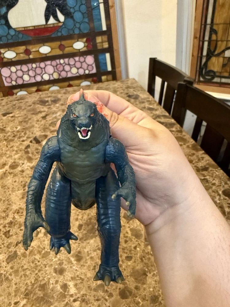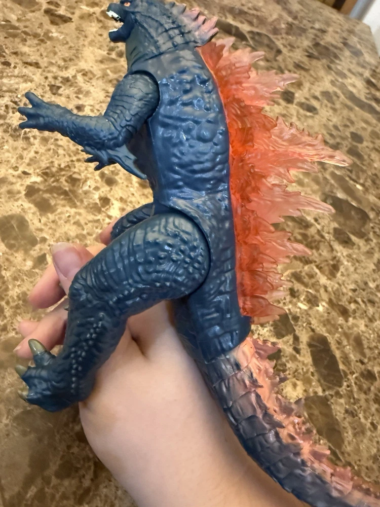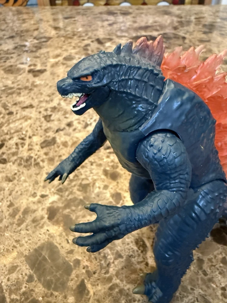 ITEM DESCRIPTION: Unleash the king of monsters with this 11-inch Giant Godzilla Figure from Godzilla x Kong: The New Empire by Playmates Toys. This highly detailed figure features a textured charcoal body, powerful sculpted limbs, and translucent orange dorsal spikes that glow with atomic fury — just like in the film! Perfect for display or play, this figure brings the Monsterverse to life with fierce expression, movie-accurate scale, and poseable arms, legs, and tail. Highlights: • Official Playmates Toys release from Godzilla x Kong: The New Empire • Measures approx. 11 inches tall • Articulated joints for dynamic posing • Bold red/orange translucent dorsal fins • Detailed scales, claws, and facial sculpt • Great for collectors, kids, and fans of the Monsterverse series CONDITION NOTE: Item does not have any other accessories or original packaging other than what is shown in photos. Item is from a smoke-free home. See photos for condition.