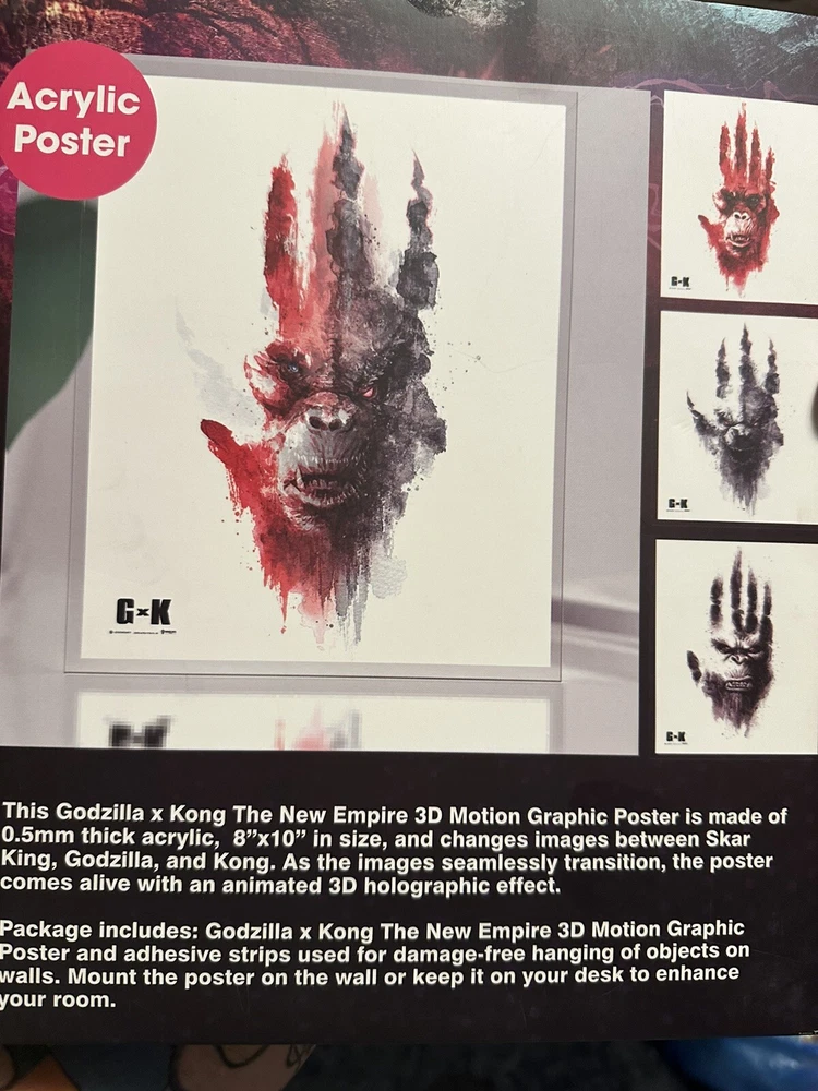 Add a breathtaking piece of art to your collection with this stunning 3D motion graphic poster featuring the iconic monsters, Godzilla and King Kong. The poster measures 8x10 inches and is printed on high-quality canvas material. It features a beautiful and vivid design that will surely catch the attention of any collector. This original piece is framed and ready to be displayed. It is perfect for fans of the Godzilla universe and would make a great addition to any collection of comic books and memorabilia. Don't miss out on the opportunity to own this unique and one-of-a-kind item.