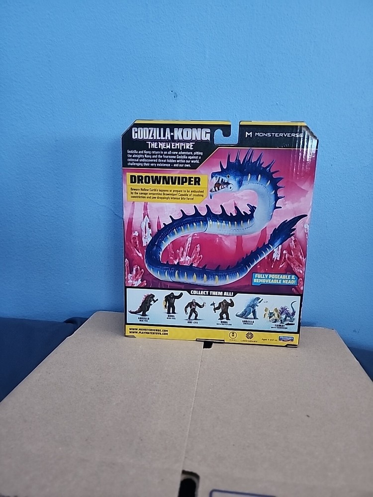 Unleash the thrill of the MONSTERVERSE with the DROWNVIPER action figure from the latest installment of the Godzilla x Kong series, "The New Empire." This vividly colored figure stands at an impressive 6 inches tall and is crafted from durable plastic designed to withstand hours of imaginative play. The figure captures the essence of the franchise's dynamic storytelling and Playmates Toys' commitment to quality. The DROWNVIPER figure is a must-have for fans and collectors alike, featuring new packaging that reflects the 2024 movie theme. With its striking blue hues and accurate detailing, it's a standout representation of the character from both the TV show and the movies. Ideal for anyone aged 4 and up, this action figure is a seamless addition to any MONSTERVERSE collection.