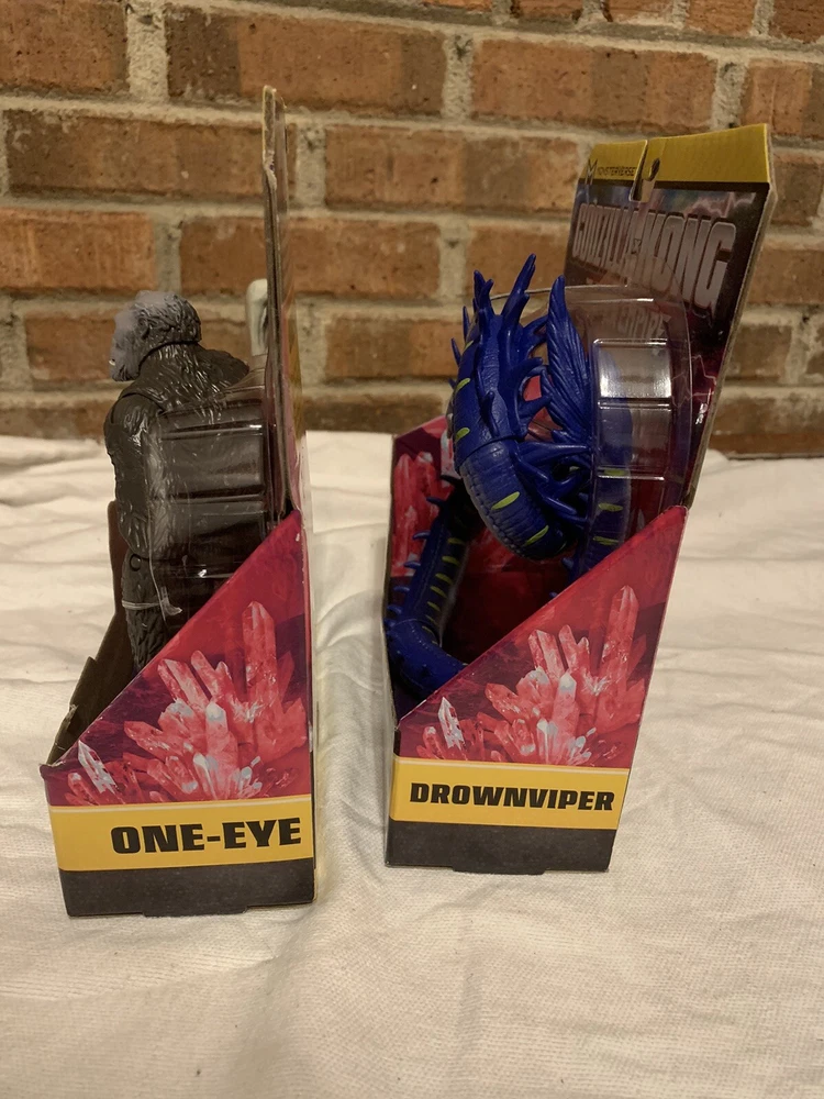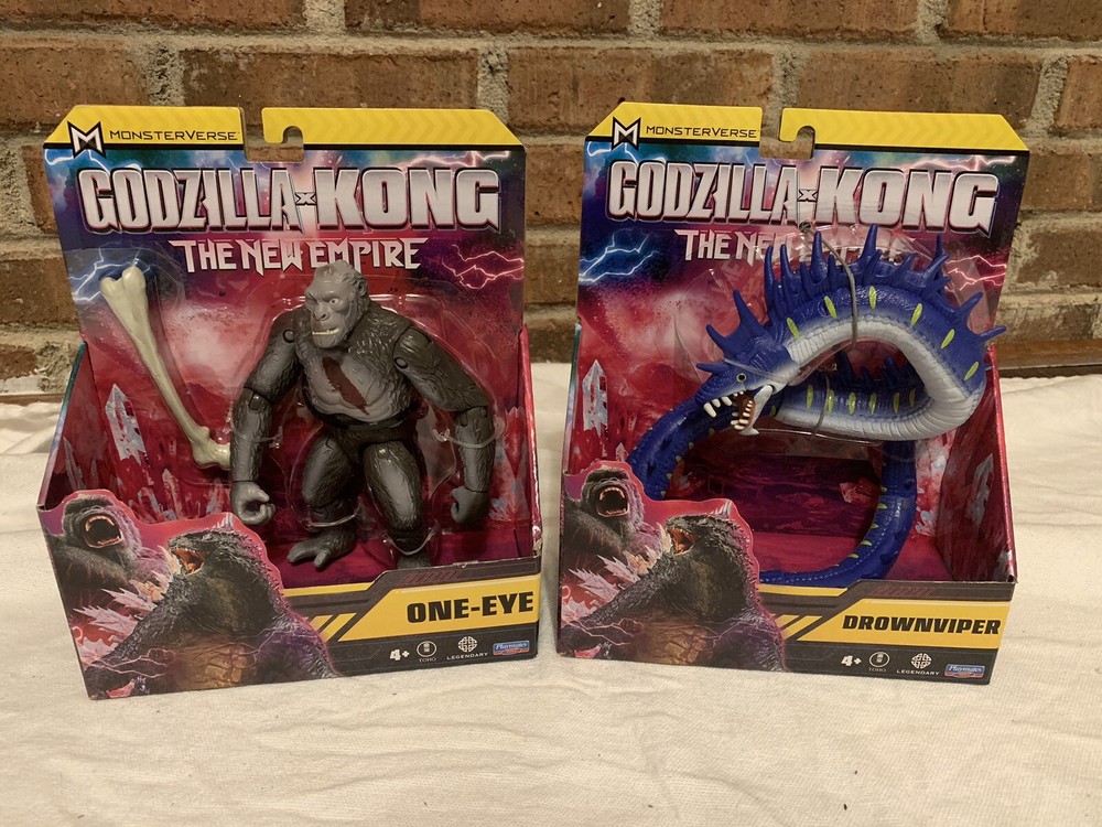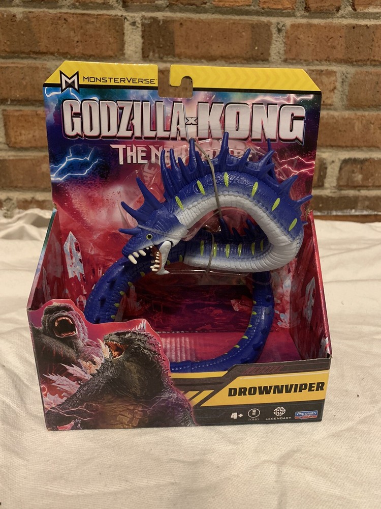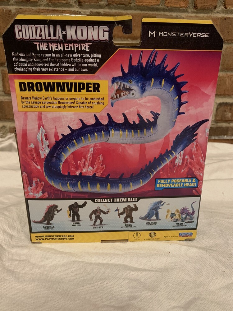 This product is an original Playmates Toys action figure called the DROWNVIPER, featuring the character from the Godzilla x Kong The New Empire movie. The figure is made of plastic and is 6 inches tall. It comes with one eye and is part of the MONSTERVERSE franchise. The packaging is new and features the 2024 theme from the movie.