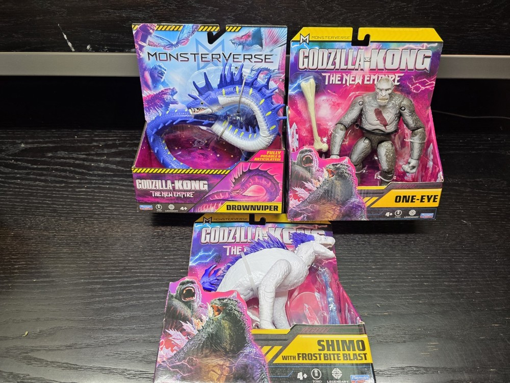 Get ready for an epic battle with the Godzilla x Kong The New Empire Drownviper,One-Eye & Shimo Action Figures Monsterverse set. These highly detailed figures are perfect for fans of the franchise and the TV show. The figures stand at 6 inches tall and are made of durable plastic material. The set includes a mixed lot of items and features new 2024 Godzilla x Kong movie theme packaging. The characters included are DROWNVIPER, Shimo, and One-Eye, all of whom are part of the MONSTERVERSE franchise. This custom bundle is an original and licensed reproduction, making it a must-have for collectors.