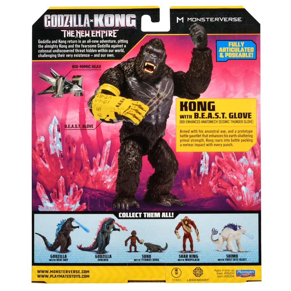 Ready to reign over any display or play setting, the GODZILLA X KONG 6” Kong figure is highly detailed with intricate designs, multiple points of articulation, and Kong’s destructive B.E.A.S.T. (Bio-Enhanced Anatomech Seismic Thunder) Glove, capturing the essence of the King of Skull Island. Made to match the new movie, ensuring an authentic representation of his iconic character. Comes in a unique GODZILLA X KONG package. Height Approximately 6 Inches