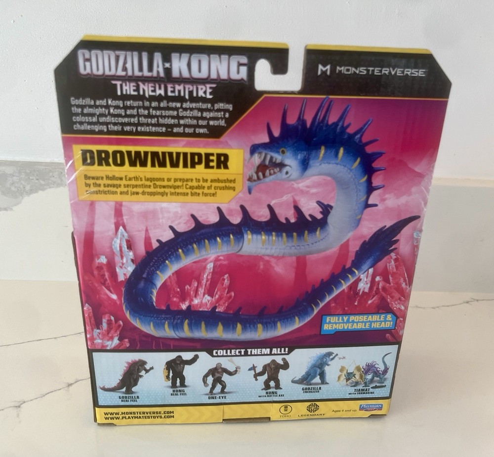 Embark on an epic adventure with the DROWNVIPER action figure from the "Godzilla x Kong: The New Empire" movie. This Monsterverse collection piece, crafted by Playmates Toys, is a striking multicolor representation of the franchise's captivating universe. Ideal for fans and collectors over the age of 4, this 1:12 scale figure brings the terrifying yet fascinating world of these cinematic giants right into your home. The DROWNVIPER figure, an essential addition to any "Godzilla x Kong" assortment, is made from durable plastic and boasts intricate articulation, allowing for dynamic posing and reenactment of iconic scenes. This 2024 release, part of the Monsterverse series, is a must-have for enthusiasts of the genre, providing a high-quality, licensed reproduction that stays true to the original concept.