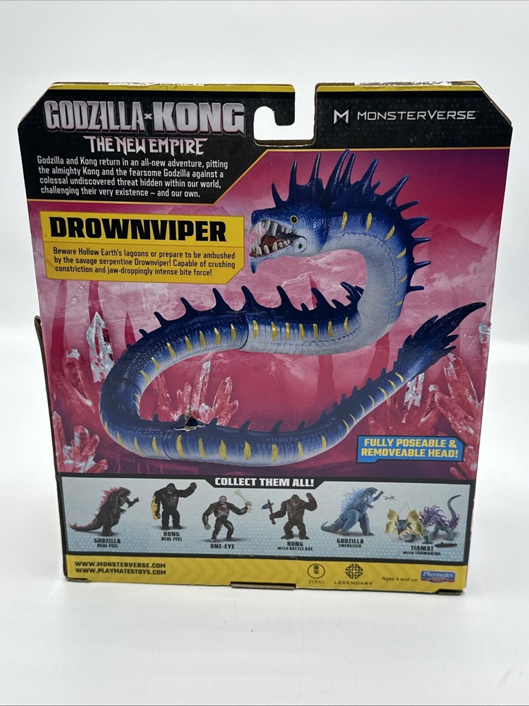 Dive into the thrilling world of Monsterverse with the DROWNVIPER action figure from the blockbuster movie "Godzilla x Kong: The New Empire." Expertly crafted by Playmates Toys, this 1:12 scale figurine brings the fierce underwater creature to life with its detailed design and vivid multicolor scheme, making it a standout addition to any collection. The DROWNVIPER figure is fully articulated, allowing for dynamic posing and reenactment of iconic scenes from the movie. Made from durable plastic, it's designed for fans aged 4 and up. Whether you're a seasoned collector or just starting out, this Monsterverse figure is a must-have for enthusiasts of the "Godzilla x Kong" franchise.