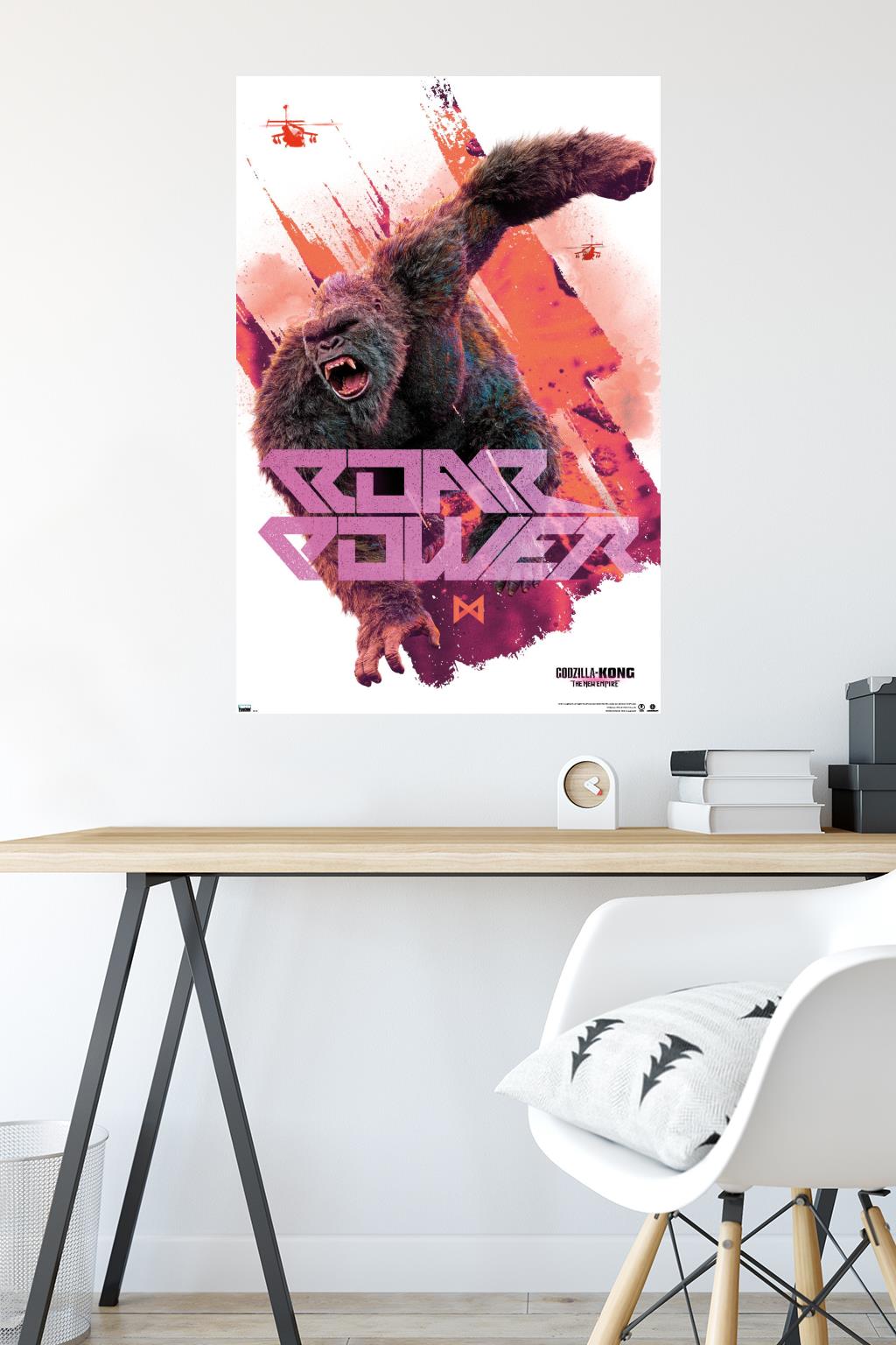 Trends International wall posters are everyone's favorite room decor! This Godzilla x Kong: The New Empire - Roar Power Wall Poster is created with high-resolution artwork and is printed on glossy poster paper which enhances the colors to make a bold wall decor statement in any room. Decorate the bedroom, bathroom, kid's room, living room, office, dorm, and more! Our art prints are lightweight and easy to hang using the included adhesive poster mounts that won't leave holes in your poster or damage your wall like nails, thumb tacks, or push pins. Every one of our premium posters are proudly Made in the USA. Add these decorations alongside the other accessories on your party supplies list too! Trends International's wall posters are the perfect way to dress up your parties. Poster bundles make great gifts as well! Whether it's for a birthday, Christmas, house warming or for your best friend, they'll love receiving a poster and mount bundle to show off their style.