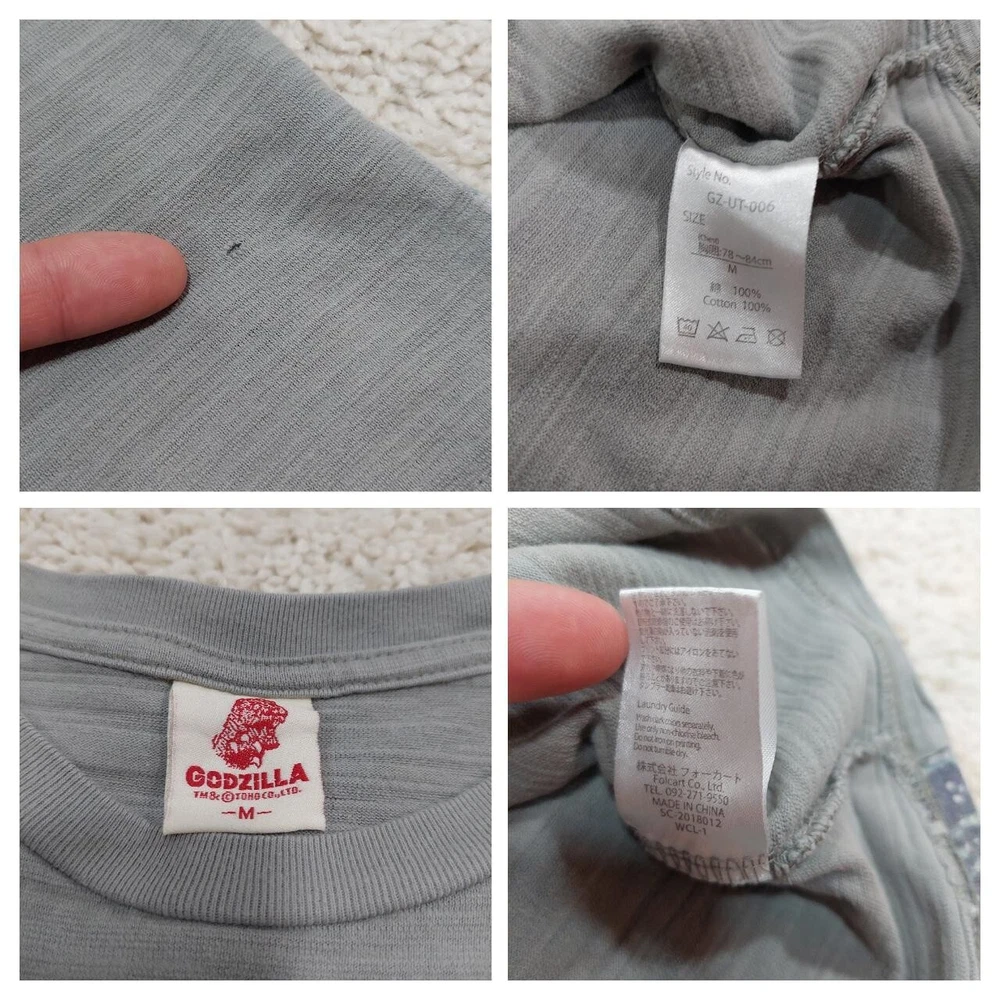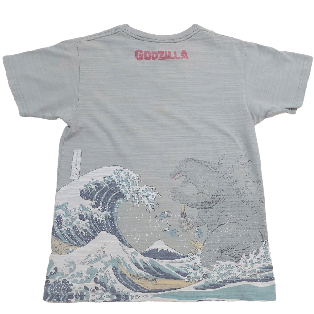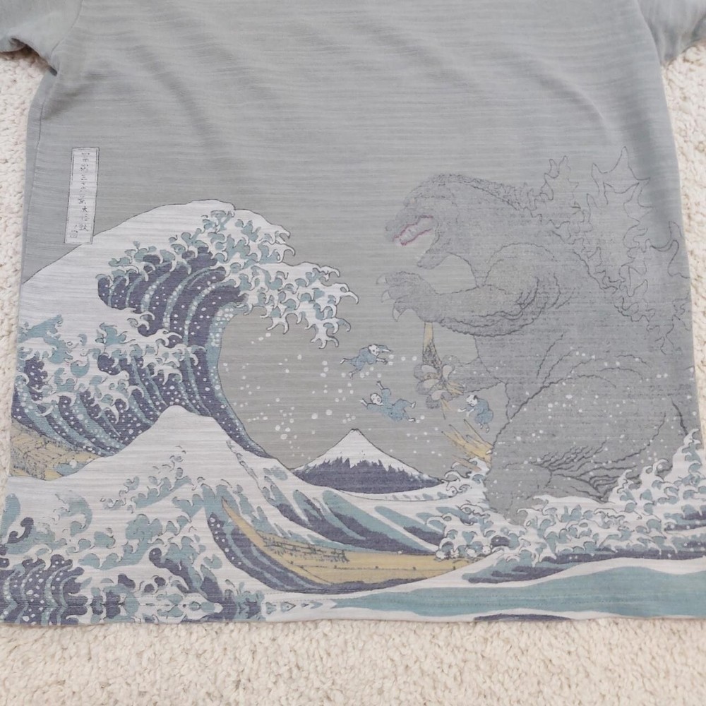 Godzilla x Toho Co. Knit T-Shirt Japanese Kanagawa Great Wave Ukiyo-e Art Parody Tee. Sz M. Condition: Lightly distressed with a hole and slight bleach mark on the front. Material: 100% Cotton Measurements: See Pics I do returns and refund the price of the item (not shipping) but the buyer will be responsible for return shipping. The item must be returned in the same condition as it arrived. Tags: #hokusai #godzilla #japan #art #merch