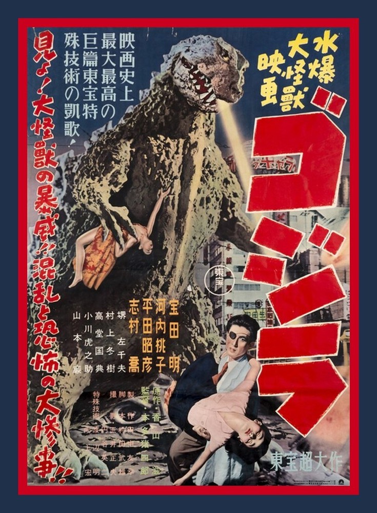 Magnets Made From Historical Photos, Famous Artworks, Celebrities and Vintage Movie Posters Item: Gojira - Japanese Monster Movie Poster Image Size: BIG Magnet will measure about 3.5 x 5 inches. Features: Heavy gauge magnet Premium Glossy Photo Paper Archival Inks All of my fridge magnets are fully backed by flexible magnetic material, and covered with laminate for protection and long life. Magnets are nicely packaged in upcycled maps or vintage dictionary pages. 20231019