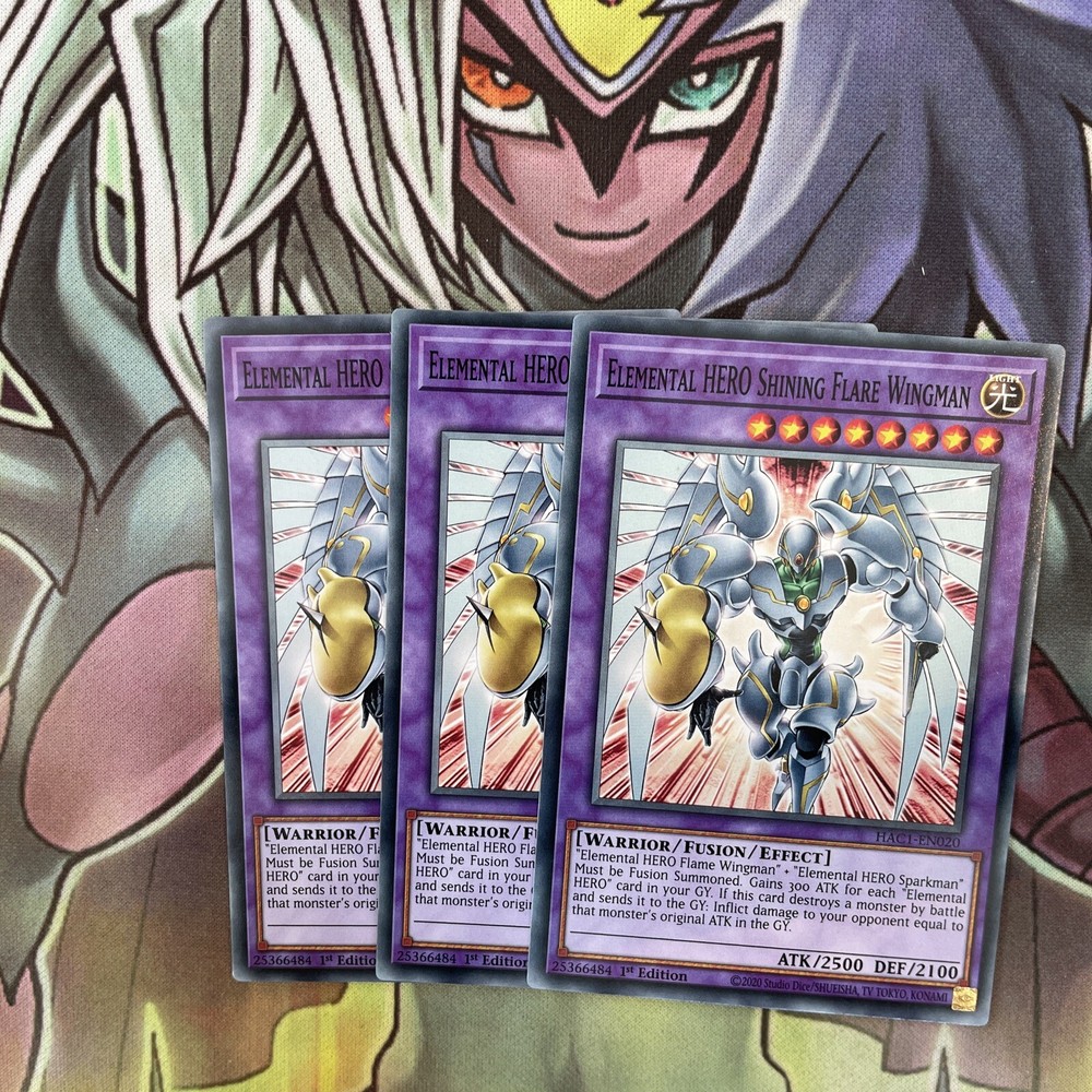 Listing Template 2018 Home About Us Shipping Returns View Feedback Contact Us HAC1-EN020 x3 Elemental HERO Shining Flare Wingman Common Excellent Yugioh These cards are in excellent condition as per the photos. You will receive a playset of cards. (x3) Thanks for viewing! Thanks for viewing! Please check out our eBay store for more cards and don’t forget to use our promotional offers to save money on multiple items! We offer COMBINED INTERNATIONAL SHIPPING! Please contact us and ask us to combine multiple cards in your shipment to save on postage costs! International tracking is included on all orders over £40. If you require a tracking code under this amount it is an additional charge of £6.50. Please add this to your order or contact us for more information. We provide postage free in the UK! All of our single cards are sleeved, with a taped Toploader to ensure maximum protection, and the best overall condition of your cards! Combined orders may in the same sleeve, unless requested otherwise. Do you want to earn extra cash for your old cards? Clear out your binder and send us photos of what you have! We will happily send you an offer and sort out postage to make it hassle free. There's no harm in trying! Message us now! Free UK Delivery! Honest Sellers. We take care of the cards so you can worry less about the fuss and more about winning, competing and collecting. About Us We started selling collectable cards over 6 years ago after selling off our own childhood Yu-Gi-Oh collection. We then rediscovered our passion for trading card games. Ever since, my brother and I have been trying to ensure that we provide a range of cards within the fastest possible time to ensure you can build your collection as you’d like it! With over 35,000 positive feedback we strive for quality customer service, aiming to give the service that we would like to receive and stock a huge inventory of new and vintage collectable cards from popular games such as Yu-Gi-Oh and Pokemon so there’s something for everyone! Our goal is that we hope to build a collectable card community as passionate about collectable cards as we are! Contact Us The best way to get in contact is through eBay’s ‘contact seller’ button where we’ll try to get back to you as soon as possible. Feedback We always prioritise your buying experience so you can shop without worry. Contact us if there’s any part of an order you were dissatisfied with as we hope to resolve any issues as soon as possible. Buy with confidence. View Our Categories