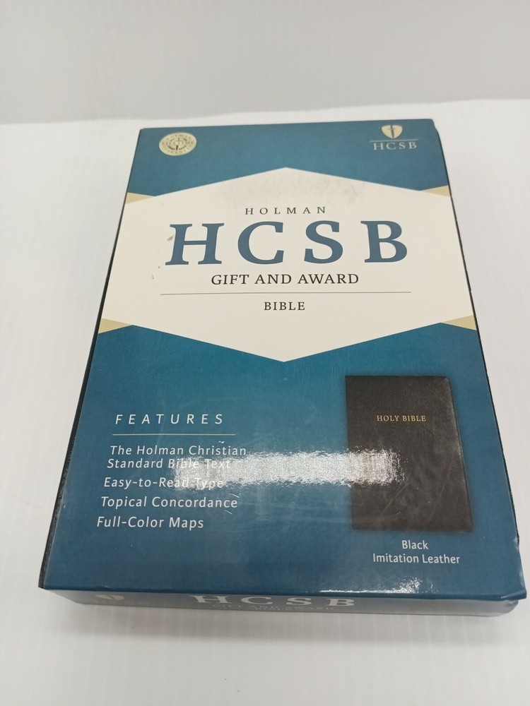 HCSB Gift & Award Bible, Black Imitation Leather Easy-to-read, Maps, Holman EUC. Don't think it has ever been used. The dust cover has some scuffs but the bible is in great condition. No handwriting inside. No highlighting inside. Great condition. Shipped media mail.