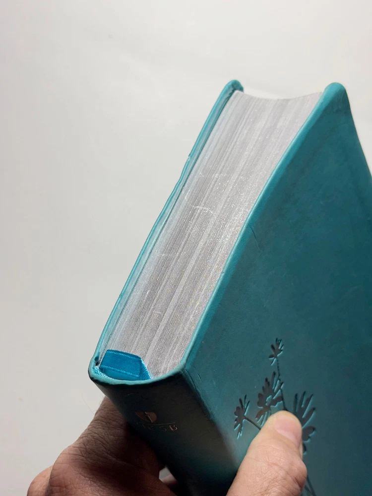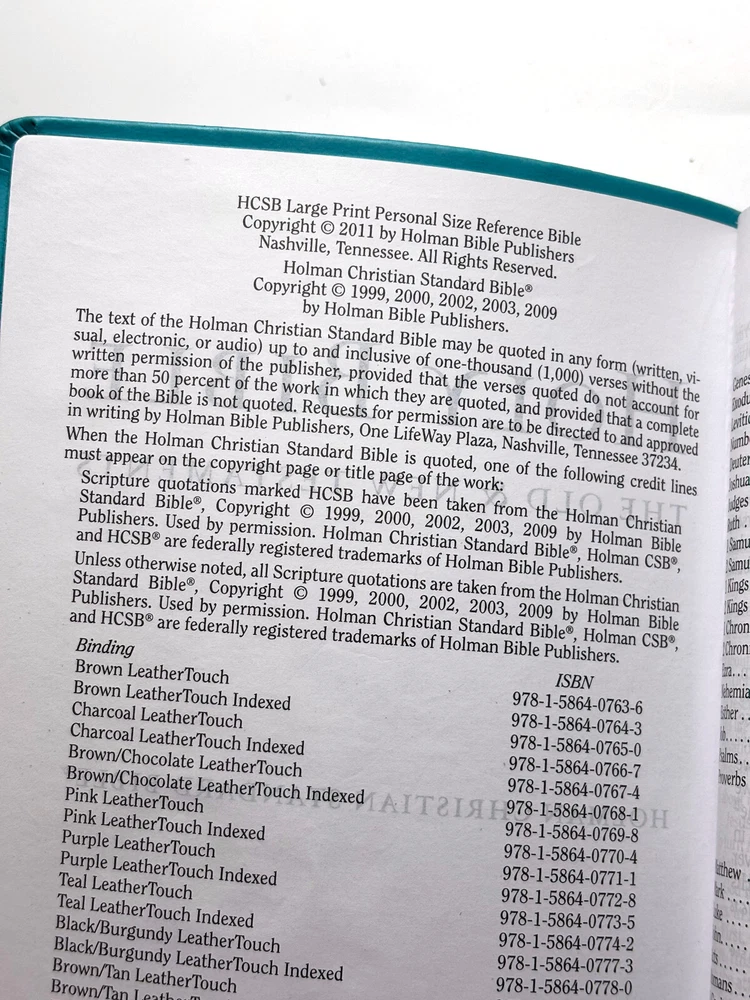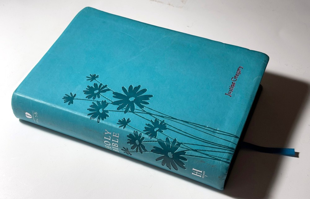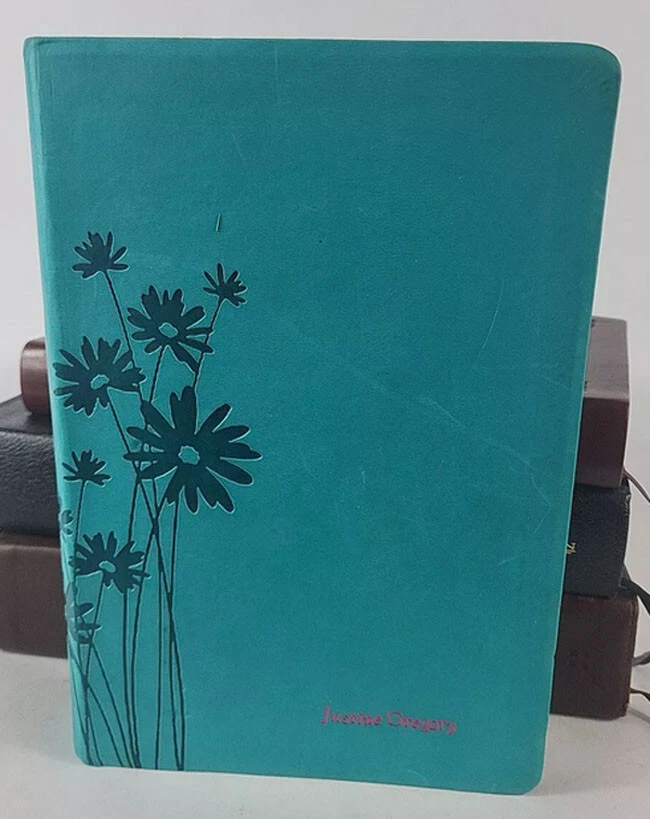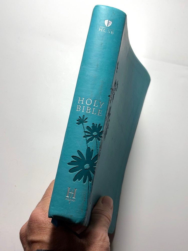 The HCSB Personal Size Bible features a Turquoise Flower Embossed Imitation Leather cover with the words of Christ in red letter. It was authored by God and published in 2010. The book is written in English and falls under the category of Bibles, focusing on the subject of Religion & Spirituality. Some signs of gentle use. Name embossed on cover. About 5 or 6 pages after the Gospels have some pink highlighter. Fast handling. I price items for what I like, so let me know what price you like. All offers will be considered. Please ask any questions. Note that eBay auto-fills "item specifics." Actual item in photos. Additional photos provided upon request. Thanks for looking!!
