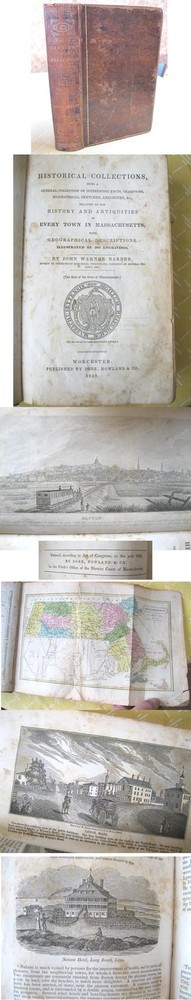 ENLARGED PICTURES!!! Please scroll ALL the way down to see LARGER images. e17. Every Town In Massachusetts, by John Warner Barber. Pub. Dorr, Howland & Co., Worcester, MAss., 1840. Octavo, 624 pages. Fully Illustrated. Hand-colored map (tape repaired). Full calf, ink stain at rear (see pix). Strong copy, hinges not cracked, moderate wear. Sporadic foxing throughout. Good+ condition. Please do not hesitate to e-mail with any questions. As Always, Satisfaction Guaranteed! PAYMENT: PayPal, because eBay requires sellers to list electronic payments exclusively. I expect to receive payment within 10 days, unless we have made other arrangements. MEDIA MAIL: The majority of my books are sent Media Mail to U.S. customers. I add $1.00 for shipping materials, etc. (The shipping price that you see at the top of the page includes the handling fee.) PRIORITY MAIL: I will send both Media cost and Priority cost with invoice, on books which seem to warrant Priority service or when buyer requests it. Tracking numbers will be included on purchases of $24.99 or more. I'm glad to combine multiple purchases in order to minimize shipping costs. I WILL SHIP INTERNATIONALLY, and I try to be as economical as possible with the shipping costs. Whenever a book will fit comfortably in a Priority Flat Rate Envelope, I'll send it this way for $14.00. RETURN POLICY: Satisfaction Guaranteed! Payment I accept the following forms of payment: PayPal Shipping & Handling I'm glad to combine multiple purchases for less expensive shipping costs. $4.00 USPS Media Mail® FREE scheduling, supersized images and templates. Get Vendio Sales Manager. FREE scheduling, supersized images and templates. Get Vendio Sales Manager. Over 100,000,000 served. Get FREE counters from Vendio today! Track Page Views With Auctiva's FREE Counter