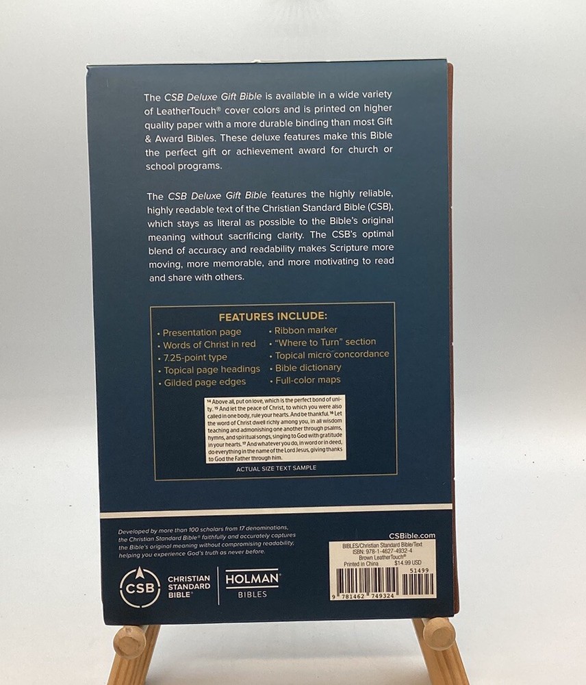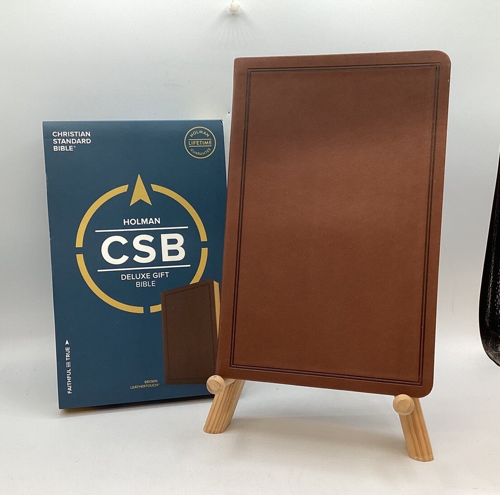 No marks or annotations. Excellent condition. The HOLMAN CSB Deluxe Gift Bible is a Christian Bible designed as a gift item, featuring a brown leather touch cover with red lettering. It includes maps, a dictionary and concordance for reference and study purposes. Features a red marking ribbon and guilded edges. This Bible is based on the Christian faith of Christianity and is suitable for collectors or individuals seeking a high-quality edition for personal use. Please view pictures for additional information and actual condition. If you have any questions, please ask. Thanks for looking. I try to provide enough pictures so that you can judge what the item's condition, grade, or worth.