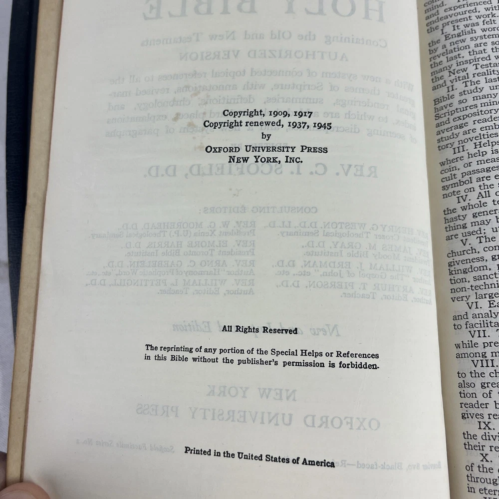 HOLY BIBLE Concordance SCOFIELD REFERENCE Edition Oxford Press - 1945