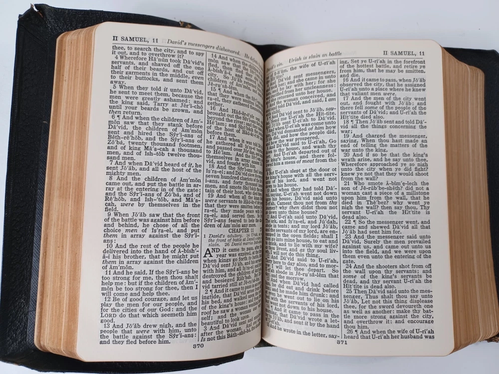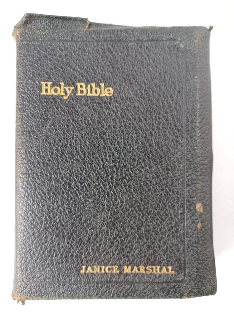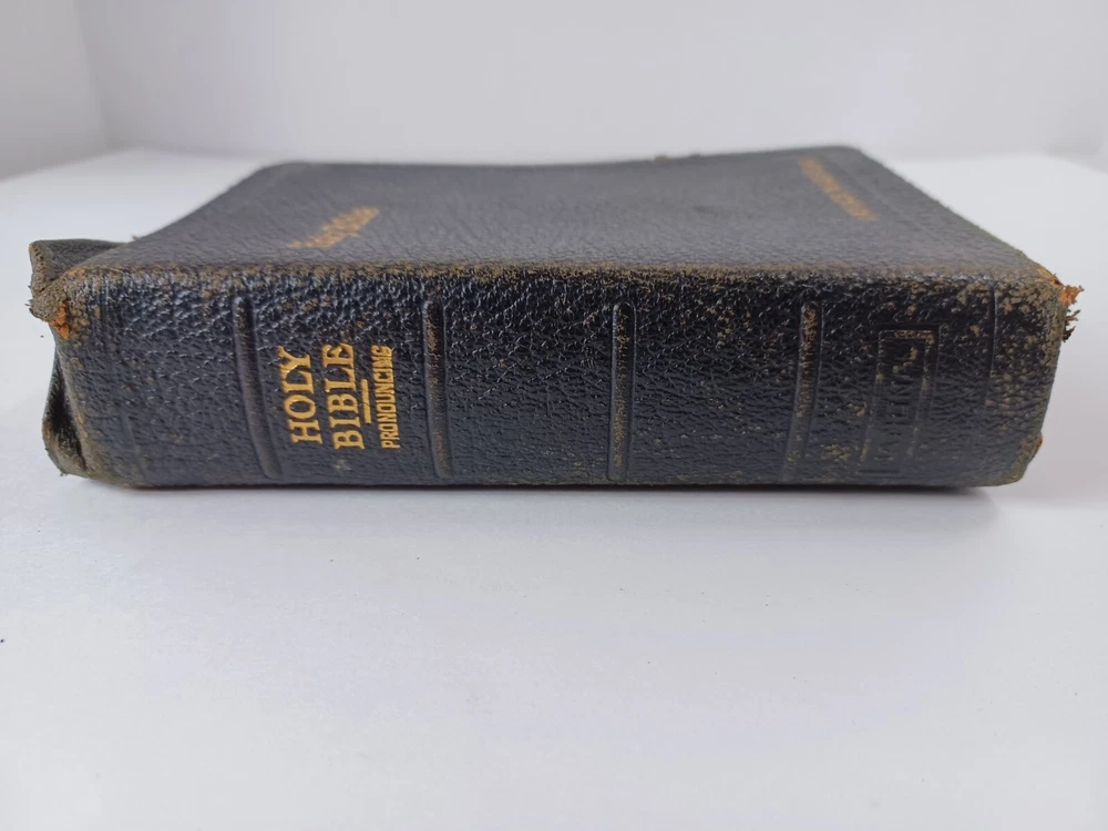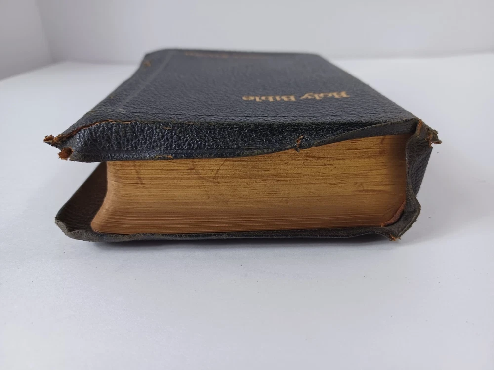 HOLY BIBLE KJV Self Pronouncing ~ National Bible Press Genuine Leather VTG good / very good condition, tight binding, writing on presentation page, wear to cover, see pictures for details more books and bibles in our store 6.5" x 4.75" x 1.5" Buy with confidence, shipped with care Shipped USPS