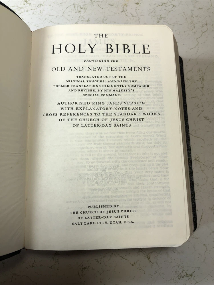 HOLY BIBLE King James Version The Church Of Jesus Christ of LATTER-DAY SAINTS This book is in excellent condition, however, we are only selecting Very Good within the condition requirements for this listing. This faux leather bound Bible is a must-have for young adults and adults alike. Containing the King James version of the Bible, this book is personally narrated by Joseph Smith and includes maps and an index. The Bible is 825+ pages long and written in English. It is a great addition to any collection, especially for those interested in spirituality, mind, body, and spirit, and religious and spiritual topics. This Bible is not personalized or signed, but it does come with special attributes such as illustrations that make it a unique item. Get your hands on this amazing piece of literature today!