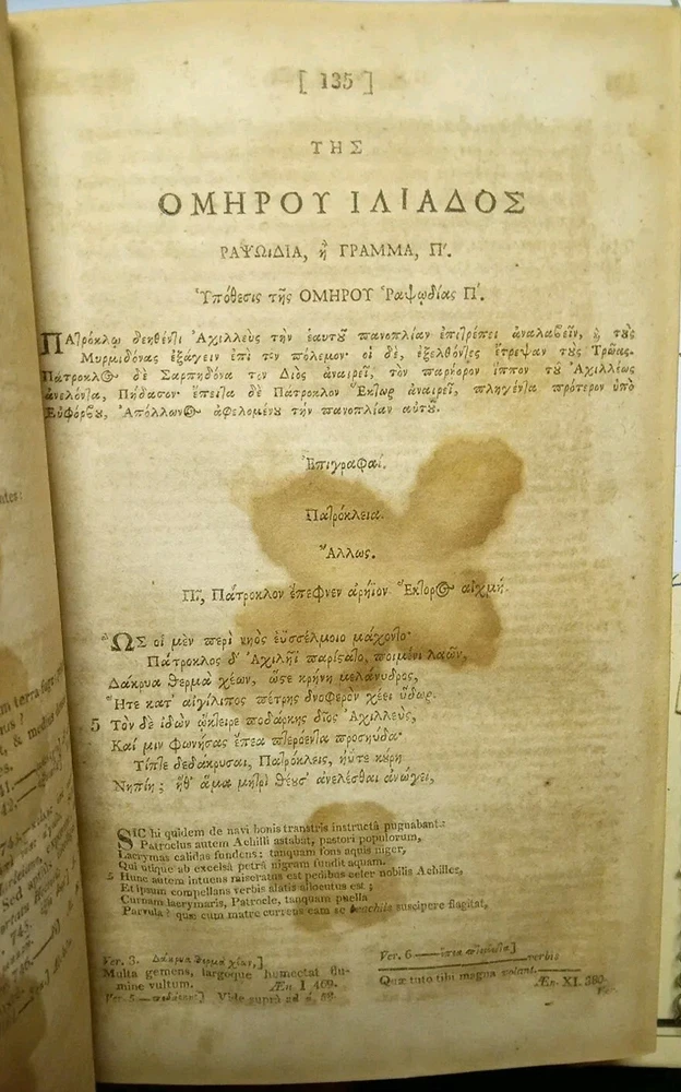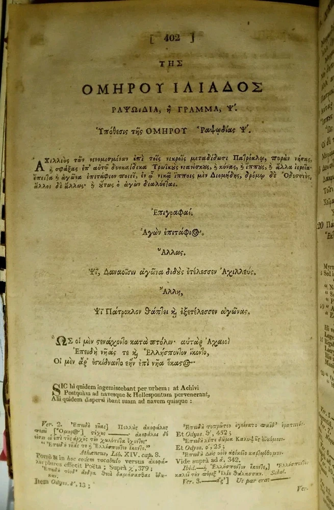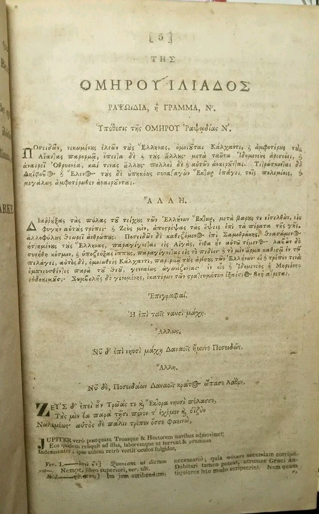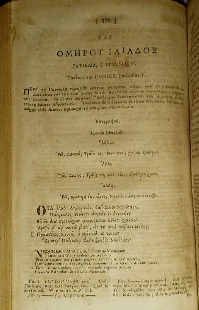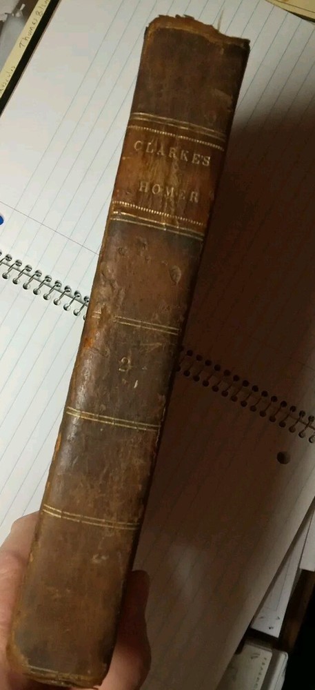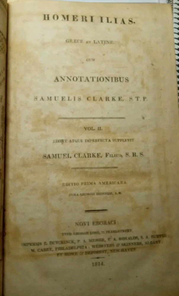 HOMERI ILLIAS Graece et Latine cum Annotationibus Samuelis Clarke. Volume 2 only of 2 volumes. Editio Prima Americana. Novi Senora I: Empensis E. Duyckinck, et.al., 1814. Full leather. Fold-out map. 510 & (17) pages. Good condition: wear to spine ends and cover corners.; pages are moderately browned, foxed, and stained.