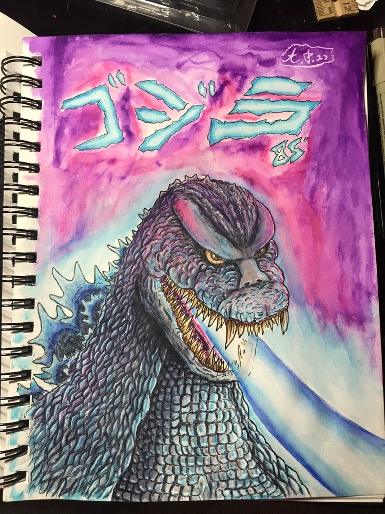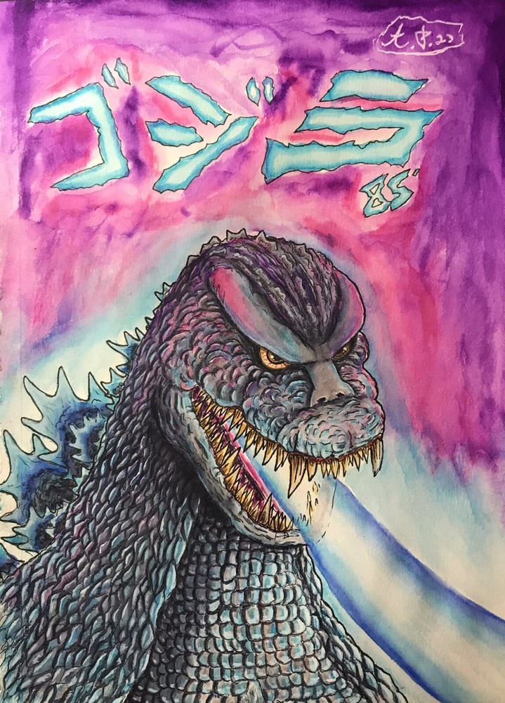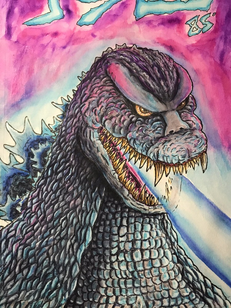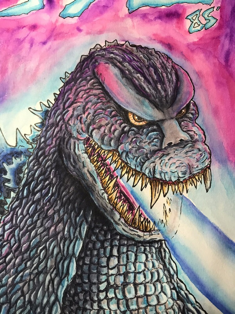Hand Drawn Godzilla 1985 Original Drawing Watercolor/acrylics Godzilla Art. 7x10 inches