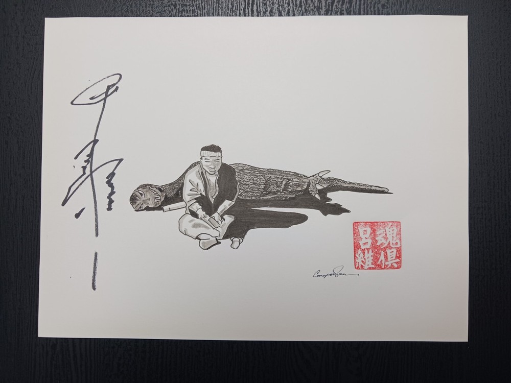 What an incredible piece of film history! Owning a signed sketch by the original Godzilla actor himself feels surreal. The personal touch of the signing photo included makes it even more special. A true treasure for any fan!