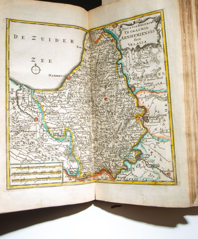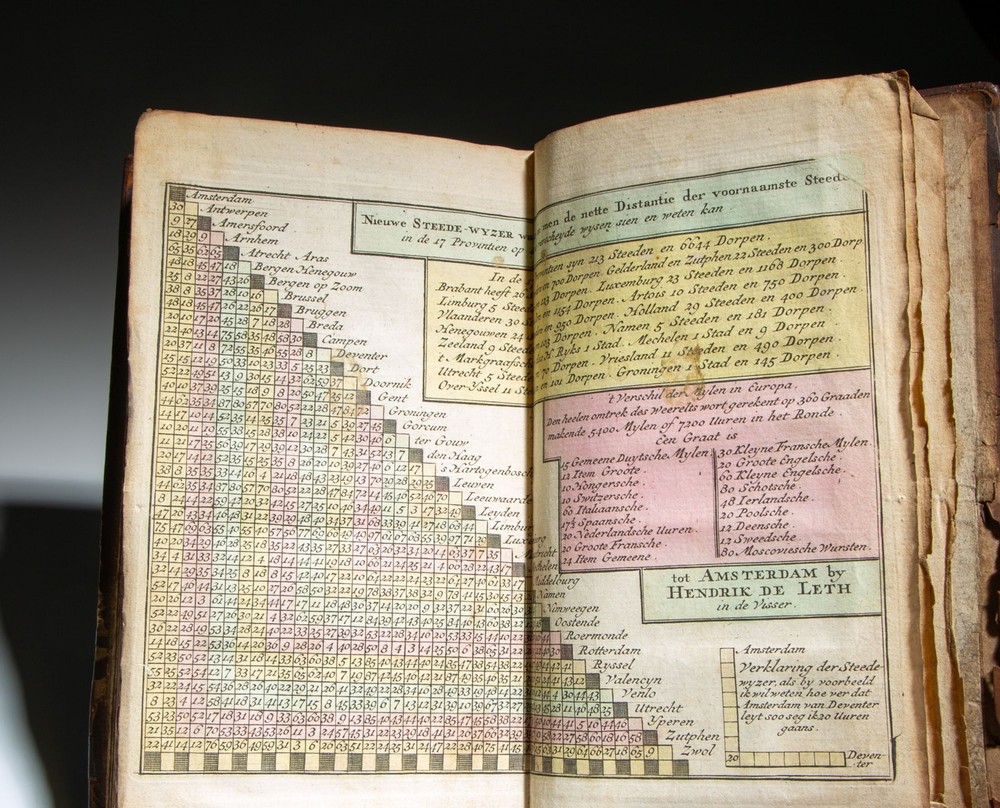 Nieuwe Geographische en Historische Atlas van de Zeven Vereengde Nederlandsche Provintiën Author: De Leth, Hendrik Title: Nieuwe Geographische en Historische Atlas van de Zeven Vereengde Nederlandsche Provintiën Publication: Amsterdam: [Hendrik de Leth], [1766] Edition: First Edition Description: The first edition of Nieuwe Geographische en Historische Atlas, published in 1766 by Hendrik de Leth, with hand-colored maps of The Netherlands. Leather bound. Twelvemo, [title], [65pp], [maps]. Period calf, title in faint gilt along spine, decorative raised bands. Previous booksellers description affixed to front pastedown. Marginalia in pencil on rear endpaper, ownership inscription in ink on front pastedown. Both hinges reinforced with archival tissue. This work includes 53 of 54 plates, many fold-out and hand-colored maps of The Netherlands, Amsterdam, distance tables, a plate of flags and regional maps of Northwestern Europe. Maps individually numbered by hand, out of sequence with "Plate Register." This work is lacking Plate 19: "Platte grond van's Gravenhage." Occasional toning to plates, a few with notable wear at hinges, a very good example of this scarce work. Very good. Hendrik de Leth (1703–1766) was a Dutch engraver, cartographer, and publisher known for his detailed maps and topographical works during the 18th century. He produced cityscapes, landscapes, and illustrations that captured the geography and architecture of the Netherlands and other regions. De Leth collaborated with prominent mapmakers and published atlases that gained recognition for their accuracy and artistic quality. His works, such as maps of Amsterdam and other Dutch cities, are valuable historical records, providing insights into urban development and geographic knowledge of his time. Seller ID: 16418 Subject: Travel and Exploration The First Edition The First Edition offers collectors the finest selection of notable rare books by important world figures. Located in Cincinnati, Ohio and Vero Beach, FL, we take great pride in carrying books that are important around the world, but also in our local community . We’re proud members of the Independent Online Booksellers Association (IOBA), the Midwest Antiquarian Booksellers Association, the Northern Ohio Bibliophilic Society and the Better Business Bureau of Cincinnati. Terms All orders ship within two business days. Standard mail is USPS Media Mail. Expedited and international shipping are also available. We offer combined shipping on multiple orders. All items are guaranteed to be as described or they may be returned within 30 days of receipt for a full refund. This listing was created by Bibliopolis.