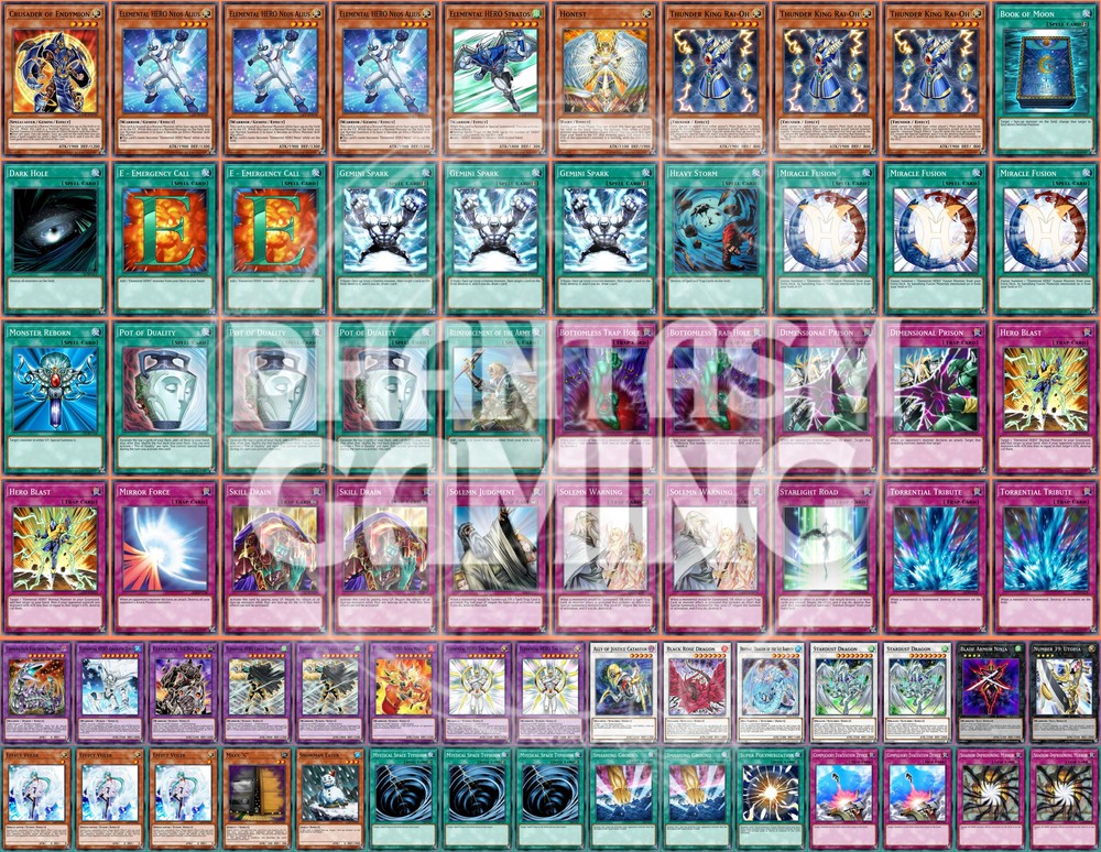 Deck Name: Hero Beat (A) (Long Beach) # Main Deck (40) 1 - Crusader of Endymion 3 - Elemental HERO Neos Alius 1 - Elemental HERO Stratos 1 - Honest 3 - Thunder King Rai-Oh 1 - Book of Moon 1 - Dark Hole 2 - E - Emergency Call 3 - Gemini Spark 1 - Heavy Storm 3 - Miracle Fusion 1 - Monster Reborn 3 - Pot of Duality 1 - Reinforcement of the Army 2 - Bottomless Trap Hole 2 - Dimensional Prison 2 - Hero Blast 1 - Mirror Force 2 - Skill Drain 1 - Solemn Judgment 2 - Solemn Warning 1 - Starlight Road 2 - Torrential Tribute # Extra Deck (15) 1 - Chimeratech Fortress Dragon 1 - Elemental HERO Absolute Zero 1 - Elemental HERO Gaia 2 - Elemental HERO Great Tornado 1 - Elemental HERO Nova Master 2 - Elemental HERO The Shining 1 - Ally of Justice Catastor 1 - Black Rose Dragon 1 - Brionac, Dragon of the Ice Barrier 2 - Stardust Dragon 1 - Blade Armor Ninja 1 - Number 39: Utopia # Side Deck (15) 3 - Effect Veiler 1 - Maxx "C" 1 - Snowman Eater 3 - Mystical Space Typhoon 2 - Smashing Ground 1 - Super Polymerization 2 - Compulsory Evacuation Device 2 - Shadow-Imprisoning Mirror You will receive all of the following cards listed above. Most cards will will be in near mint condition. In the case of certain older cards we will do our best but some cards may be light or even moderatly played in extreme condtions. Those conditions being the card has not been reprinted in a number of years and con no longer be easily purchased in light or near mint condition. Set, Rarity, and Edition will vary and cannot be special requested. These lists are constructed with least expensive rarities we have available in stock. All cards are play legal copies. Note: If purchasing a Yugioh Deck all Speed duel cards are 100% legal at all levels of play. Store Policies Here at PMG_LLC , we pride ourselves on having the best customer service around. If you have any questions or can't seem to find something that you want please do not hesitate to contact us. We will do our best to respond to all questions within one business day. Hours of Operation: Monday-Friday: 2:30pm - 10:00pm Saturday- 10:00am - 8:00pm Sunday 11:00am - 5:30pm Note: We are closed all national holidays. Info: Thank you for choosing PMG_LLC . We appreciate your business. We ship Monday through Friday to make sure you get your deck as quickly as possible. All orders priority orders can use combined shipping. In order to use the combined shipping your whole purchase needs to be checked out as one order. We ship once we have received your payment and payment has cleared. As always if you have any questions or concerns please feel free to contact us via email. Shipping Information: We ship Monday through Friday, barring national holidays during which the United States Postal Service is closed. If you purchase a card on Friday or Saturday please bear in mind it will not ship until Monday. US Shipping: First Class Mail : Free. Comes with tracking information. Priority Mail with Delivery Confirmation : $9.99 All orders are shipped in appropriate protective material inside bubble mailers. International Shipping: We do not offer international Shipping Return Policy: You must return items sold and fulfilled by PMG_LLC within 30 days of delivery to be eligible for a refund. Returns which are damaged in the mail due to improper return packaging will receive partial refunds. We will process a full refund for all items returned in their original condition. In order for us to process your full refund you must include the full name associated with the order as well as the eBay order number inside the return packaging. We will not process returns which do not include the buyer's name and order number. Requirements: Please return items with the original plastic packaging. Failure to do so may result in a partial refund. Also you must inform us of any returns you may wish to process before sending them back. Any items simply send back to us without prior contact will not be eligible for refunds. Important Notes Remember that to benefit from our domestic combined shipping on priority orders you must to pay in a single payment. If you place two separate priority orders you will be charged the $7.50 shipping fee for both orders. If you place multiple orders for Priority shipping you will be charged the corresponding shipping costs for each order, even if you place the orders on the same day. We do not refund shipping costs as we tend to package orders throughout the day and may not notice that you would otherwise have qualified for combined shipping. We want to provide you with 5 Star service and earn your Positive Feedback, so if for any reason you are not happy with your transaction, contact us before leaving feedback. Business Day - Our business day runs from Monday to Friday from 9am to 4pm, excluding US national holidays. Any orders placed or payments cleared less than 4 hours before the close of business will be considered orders from the following business day.