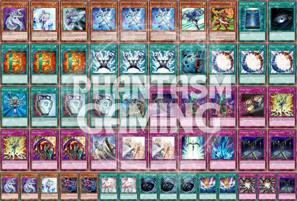 Deck Name: Hero Beat (B) (Shockwave) # Main Deck (40) 1 - Cyber Dragon 1 - Effect Veiler 1 - Elemental HERO Bubbleman 3 - Elemental HERO Neos Alius 1 - Elemental HERO Stratos 1 - Evocator Chevalier 1 - Book of Moon 1 - Dark Hole 3 - E - Emergency Call 3 - Gemini Spark 1 - Heavy Storm 3 - Miracle Fusion 1 - Monster Reborn 3 - Pot of Duality 1 - Reinforcement of the Army 1 - Black Horn of Heaven 2 - Bottomless Trap Hole 1 - Dark Bribe 2 - Hero Blast 2 - Skill Drain 1 - Solemn Judgment 2 - Solemn Warning 1 - Starlight Road 1 - Torrential Tribute 2 - Fiendish Chain # Side Deck (15) 2 - Cyber Dragon 1 - Effect Veiler 2 - Gemini Imps 2 - Leeching the Light 3 - Mystical Space Typhoon 2 - Smashing Ground 2 - Shadow-Imprisoning Mirror 1 - Fiendish Chain You will receive all of the following cards listed above. Most cards will will be in near mint condition. In the case of certain older cards we will do our best but some cards may be light or even moderatly played in extreme condtions. Those conditions being the card has not been reprinted in a number of years and con no longer be easily purchased in light or near mint condition. Set, Rarity, and Edition will vary and cannot be special requested. These lists are constructed with least expensive rarities we have available in stock. All cards are play legal copies. Note: If purchasing a Yugioh Deck all Speed duel cards are 100% legal at all levels of play. Store Policies Here at PMG_LLC , we pride ourselves on having the best customer service around. If you have any questions or can't seem to find something that you want please do not hesitate to contact us. We will do our best to respond to all questions within one business day. Hours of Operation: Monday-Friday: 2:30pm - 10:00pm Saturday- 10:00am - 8:00pm Sunday 11:00am - 5:30pm Note: We are closed all national holidays. Info: Thank you for choosing PMG_LLC . We appreciate your business. We ship Monday through Friday to make sure you get your deck as quickly as possible. All orders priority orders can use combined shipping. In order to use the combined shipping your whole purchase needs to be checked out as one order. We ship once we have received your payment and payment has cleared. As always if you have any questions or concerns please feel free to contact us via email. Shipping Information: We ship Monday through Friday, barring national holidays during which the United States Postal Service is closed. If you purchase a card on Friday or Saturday please bear in mind it will not ship until Monday. US Shipping: First Class Mail : Free. Comes with tracking information. Priority Mail with Delivery Confirmation : $9.99 All orders are shipped in appropriate protective material inside bubble mailers. International Shipping: We do not offer international Shipping Return Policy: You must return items sold and fulfilled by PMG_LLC within 30 days of delivery to be eligible for a refund. Returns which are damaged in the mail due to improper return packaging will receive partial refunds. We will process a full refund for all items returned in their original condition. In order for us to process your full refund you must include the full name associated with the order as well as the eBay order number inside the return packaging. We will not process returns which do not include the buyer's name and order number. Requirements: Please return items with the original plastic packaging. Failure to do so may result in a partial refund. Also you must inform us of any returns you may wish to process before sending them back. Any items simply send back to us without prior contact will not be eligible for refunds. Important Notes Remember that to benefit from our domestic combined shipping on priority orders you must to pay in a single payment. If you place two separate priority orders you will be charged the $7.50 shipping fee for both orders. If you place multiple orders for Priority shipping you will be charged the corresponding shipping costs for each order, even if you place the orders on the same day. We do not refund shipping costs as we tend to package orders throughout the day and may not notice that you would otherwise have qualified for combined shipping. We want to provide you with 5 Star service and earn your Positive Feedback, so if for any reason you are not happy with your transaction, contact us before leaving feedback. Business Day - Our business day runs from Monday to Friday from 9am to 4pm, excluding US national holidays. Any orders placed or payments cleared less than 4 hours before the close of business will be considered orders from the following business day.