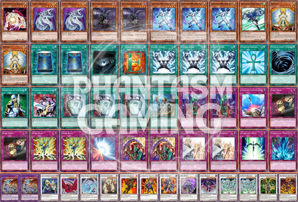 Deck Name: Hero Beat (X-Saber) (B) # Main Deck (40) 1 - Banisher of the Radiance 2 - Cyber Dragon 2 - Doomcaliber Knight 3 - Elemental HERO Neos Alius 1 - Elemental HERO Stratos 2 - Honest 2 - Book of Moon 1 - Dark Hole 1 - E - Emergency Call 3 - Gemini Spark 1 - Monster Reborn 1 - Mystical Space Typhoon 1 - Nobleman of Crossout 1 - Nobleman of Extermination 3 - Pot of Duality 1 - Reinforcement of the Army 2 - Bottomless Trap Hole 1 - Compulsory Evacuation Device 2 - Dark Bribe 2 - Hero Blast 1 - Mirror Force 2 - Skill Drain 2 - Solemn Warning 1 - Starlight Road 1 - Torrential Tribute # Extra Deck (15) 2 - Chimeratech Fortress Dragon 1 - Ally of Justice Catastor 1 - Black Rose Dragon 1 - Brionac, Dragon of the Ice Barrier 1 - Colossal Fighter 1 - Flamvell Uruquizas 1 - Gaia Knight, the Force of Earth 1 - Goyo Guardian 1 - Mist Wurm 1 - Scrap Dragon 2 - Stardust Dragon 1 - Thought Ruler Archfiend 1 - Red Dragon Archfiend You will receive all of the following cards listed above. Most cards will will be in near mint condition. In the case of certain older cards we will do our best but some cards may be light or even moderatly played in extreme condtions. Those conditions being the card has not been reprinted in a number of years and con no longer be easily purchased in light or near mint condition. Set, Rarity, and Edition will vary and cannot be special requested. These lists are constructed with least expensive rarities we have available in stock. All cards are play legal copies. Note: If purchasing a Yugioh Deck all Speed duel cards are 100% legal at all levels of play. Store Policies Here at PMG_LLC , we pride ourselves on having the best customer service around. If you have any questions or can't seem to find something that you want please do not hesitate to contact us. We will do our best to respond to all questions within one business day. Hours of Operation: Monday-Friday: 2:30pm - 10:00pm Saturday- 10:00am - 8:00pm Sunday 11:00am - 5:30pm Note: We are closed all national holidays. Info: Thank you for choosing PMG_LLC . We appreciate your business. We ship Monday through Friday to make sure you get your deck as quickly as possible. All orders priority orders can use combined shipping. In order to use the combined shipping your whole purchase needs to be checked out as one order. We ship once we have received your payment and payment has cleared. As always if you have any questions or concerns please feel free to contact us via email. Shipping Information: We ship Monday through Friday, barring national holidays during which the United States Postal Service is closed. If you purchase a card on Friday or Saturday please bear in mind it will not ship until Monday. US Shipping: First Class Mail : Free. Comes with tracking information. Priority Mail with Delivery Confirmation : $9.99 All orders are shipped in appropriate protective material inside bubble mailers. International Shipping: We do not offer international Shipping Return Policy: You must return items sold and fulfilled by PMG_LLC within 30 days of delivery to be eligible for a refund. Returns which are damaged in the mail due to improper return packaging will receive partial refunds. We will process a full refund for all items returned in their original condition. In order for us to process your full refund you must include the full name associated with the order as well as the eBay order number inside the return packaging. We will not process returns which do not include the buyer's name and order number. Requirements: Please return items with the original plastic packaging. Failure to do so may result in a partial refund. Also you must inform us of any returns you may wish to process before sending them back. Any items simply send back to us without prior contact will not be eligible for refunds. Important Notes Remember that to benefit from our domestic combined shipping on priority orders you must to pay in a single payment. If you place two separate priority orders you will be charged the $7.50 shipping fee for both orders. If you place multiple orders for Priority shipping you will be charged the corresponding shipping costs for each order, even if you place the orders on the same day. We do not refund shipping costs as we tend to package orders throughout the day and may not notice that you would otherwise have qualified for combined shipping. We want to provide you with 5 Star service and earn your Positive Feedback, so if for any reason you are not happy with your transaction, contact us before leaving feedback. Business Day - Our business day runs from Monday to Friday from 9am to 4pm, excluding US national holidays. Any orders placed or payments cleared less than 4 hours before the close of business will be considered orders from the following business day.