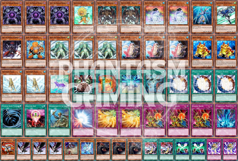 Deck Name: Hero Frog (Edison) (C) # Main Deck (40) 3 - Caius the Shadow Monarch 1 - Dandylion 2 - Destiny HERO - Malicious 2 - Dupe Frog 1 - Elemental HERO Ocean 1 - Elemental HERO Stratos 1 - Gorz the Emissary of Darkness 1 - Junk Synchron 3 - Raiza the Storm Monarch 3 - Substitoad 2 - Swap Frog 2 - Treeborn Frog 1 - Unifrog 1 - Brain Control 1 - E - Emergency Call 1 - Future Fusion 1 - Heavy Storm 3 - Miracle Fusion 1 - Mystical Space Typhoon 1 - One for One 1 - Reinforcement of the Army 1 - Mirror Force 2 - Phoenix Wing Wind Blast 3 - Raigeki Break 1 - Torrential Tribute # Side Deck (15) 1 - D.D. Assailant 3 - D.D. Crow 1 - Dark Dust Spirit 1 - Elemental HERO Neos Alius 3 - Vanity's Fiend 2 - Nobleman of Extermination 2 - Soul Exchange 2 - Karma Cut You will receive all of the following cards listed above. Most cards will will be in near mint condition. In the case of certain older cards we will do our best but some cards may be light or even moderatly played in extreme condtions. Those conditions being the card has not been reprinted in a number of years and con no longer be easily purchased in light or near mint condition. Set, Rarity, and Edition will vary and cannot be special requested. These lists are constructed with least expensive rarities we have available in stock. All cards are play legal copies. Note: If purchasing a Yugioh Deck all Speed duel cards are 100% legal at all levels of play. Store Policies Here at PMG_LLC , we pride ourselves on having the best customer service around. If you have any questions or can't seem to find something that you want please do not hesitate to contact us. We will do our best to respond to all questions within one business day. Hours of Operation: Monday-Friday: 2:30pm - 10:00pm Saturday- 10:00am - 8:00pm Sunday 11:00am - 5:30pm Note: We are closed all national holidays. Info: Thank you for choosing PMG_LLC . We appreciate your business. We ship Monday through Friday to make sure you get your deck as quickly as possible. All orders priority orders can use combined shipping. In order to use the combined shipping your whole purchase needs to be checked out as one order. We ship once we have received your payment and payment has cleared. As always if you have any questions or concerns please feel free to contact us via email. Shipping Information: We ship Monday through Friday, barring national holidays during which the United States Postal Service is closed. If you purchase a card on Friday or Saturday please bear in mind it will not ship until Monday. US Shipping: First Class Mail : Free. Comes with tracking information. Priority Mail with Delivery Confirmation : $9.99 All orders are shipped in appropriate protective material inside bubble mailers. International Shipping: We do not offer international Shipping Return Policy: You must return items sold and fulfilled by PMG_LLC within 30 days of delivery to be eligible for a refund. Returns which are damaged in the mail due to improper return packaging will receive partial refunds. We will process a full refund for all items returned in their original condition. In order for us to process your full refund you must include the full name associated with the order as well as the eBay order number inside the return packaging. We will not process returns which do not include the buyer's name and order number. Requirements: Please return items with the original plastic packaging. Failure to do so may result in a partial refund. Also you must inform us of any returns you may wish to process before sending them back. Any items simply send back to us without prior contact will not be eligible for refunds. Important Notes Remember that to benefit from our domestic combined shipping on priority orders you must to pay in a single payment. If you place two separate priority orders you will be charged the $7.50 shipping fee for both orders. If you place multiple orders for Priority shipping you will be charged the corresponding shipping costs for each order, even if you place the orders on the same day. We do not refund shipping costs as we tend to package orders throughout the day and may not notice that you would otherwise have qualified for combined shipping. We want to provide you with 5 Star service and earn your Positive Feedback, so if for any reason you are not happy with your transaction, contact us before leaving feedback. Business Day - Our business day runs from Monday to Friday from 9am to 4pm, excluding US national holidays. Any orders placed or payments cleared less than 4 hours before the close of business will be considered orders from the following business day.