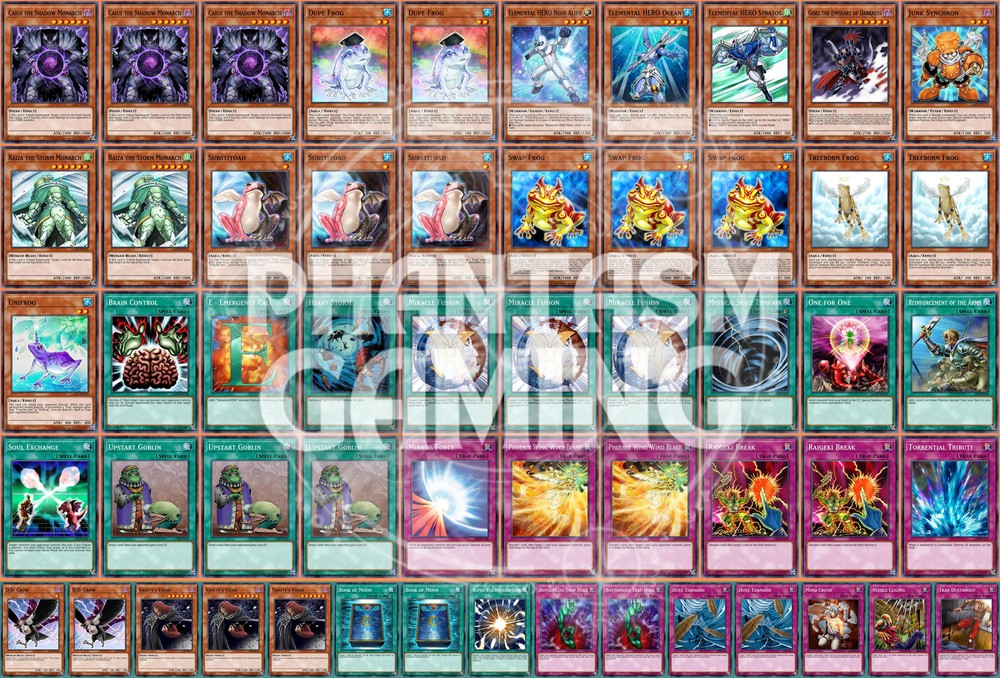 Deck Name: Hero Frog (A) ( Edison) # Main Deck (40) 3 - Caius the Shadow Monarch 2 - Dupe Frog 1 - Elemental HERO Neos Alius 1 - Elemental HERO Ocean 1 - Elemental HERO Stratos 1 - Gorz the Emissary of Darkness 1 - Junk Synchron 2 - Raiza the Storm Monarch 3 - Substitoad 3 - Swap Frog 2 - Treeborn Frog 1 - Unifrog 1 - Brain Control 1 - E - Emergency Call 1 - Heavy Storm 3 - Miracle Fusion 1 - Mystical Space Typhoon 1 - One for One 1 - Reinforcement of the Army 1 - Soul Exchange 3 - Upstart Goblin 1 - Mirror Force 2 - Phoenix Wing Wind Blast 2 - Raigeki Break 1 - Torrential Tribute # Side Deck (15) 2 - D.D. Crow 3 - Vanity's Fiend 2 - Book of Moon 1 - Super Polymerization 2 - Bottomless Trap Hole 2 - Dust Tornado 1 - Mind Crush 1 - Needle Ceiling 1 - Trap Dustshoot You will receive all of the following cards listed above. Most cards will will be in near mint condition. In the case of certain older cards we will do our best but some cards may be light or even moderatly played in extreme condtions. Those conditions being the card has not been reprinted in a number of years and con no longer be easily purchased in light or near mint condition. Set, Rarity, and Edition will vary and cannot be special requested. These lists are constructed with least expensive rarities we have available in stock. All cards are play legal copies. Note: If purchasing a Yugioh Deck all Speed duel cards are 100% legal at all levels of play. Store Policies Here at PMG_LLC , we pride ourselves on having the best customer service around. If you have any questions or can't seem to find something that you want please do not hesitate to contact us. We will do our best to respond to all questions within one business day. Hours of Operation: Monday-Friday: 2:30pm - 10:00pm Saturday- 10:00am - 8:00pm Sunday 11:00am - 5:30pm Note: We are closed all national holidays. Info: Thank you for choosing PMG_LLC . We appreciate your business. We ship Monday through Friday to make sure you get your deck as quickly as possible. All orders priority orders can use combined shipping. In order to use the combined shipping your whole purchase needs to be checked out as one order. We ship once we have received your payment and payment has cleared. As always if you have any questions or concerns please feel free to contact us via email. Shipping Information: We ship Monday through Friday, barring national holidays during which the United States Postal Service is closed. If you purchase a card on Friday or Saturday please bear in mind it will not ship until Monday. US Shipping: First Class Mail : Free. Comes with tracking information. Priority Mail with Delivery Confirmation : $9.99 All orders are shipped in appropriate protective material inside bubble mailers. International Shipping: We do not offer international Shipping Return Policy: You must return items sold and fulfilled by PMG_LLC within 30 days of delivery to be eligible for a refund. Returns which are damaged in the mail due to improper return packaging will receive partial refunds. We will process a full refund for all items returned in their original condition. In order for us to process your full refund you must include the full name associated with the order as well as the eBay order number inside the return packaging. We will not process returns which do not include the buyer's name and order number. Requirements: Please return items with the original plastic packaging. Failure to do so may result in a partial refund. Also you must inform us of any returns you may wish to process before sending them back. Any items simply send back to us without prior contact will not be eligible for refunds. Important Notes Remember that to benefit from our domestic combined shipping on priority orders you must to pay in a single payment. If you place two separate priority orders you will be charged the $7.50 shipping fee for both orders. If you place multiple orders for Priority shipping you will be charged the corresponding shipping costs for each order, even if you place the orders on the same day. We do not refund shipping costs as we tend to package orders throughout the day and may not notice that you would otherwise have qualified for combined shipping. We want to provide you with 5 Star service and earn your Positive Feedback, so if for any reason you are not happy with your transaction, contact us before leaving feedback. Business Day - Our business day runs from Monday to Friday from 9am to 4pm, excluding US national holidays. Any orders placed or payments cleared less than 4 hours before the close of business will be considered orders from the following business day.