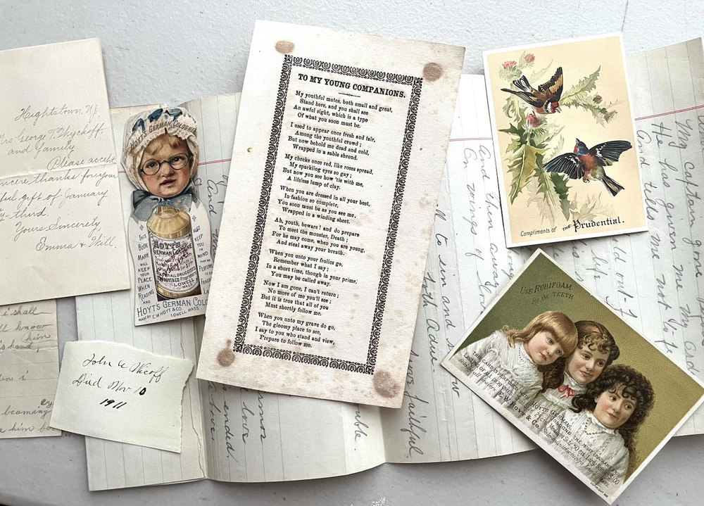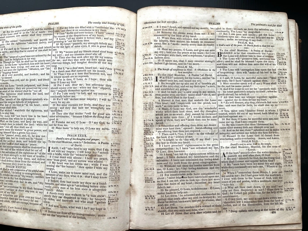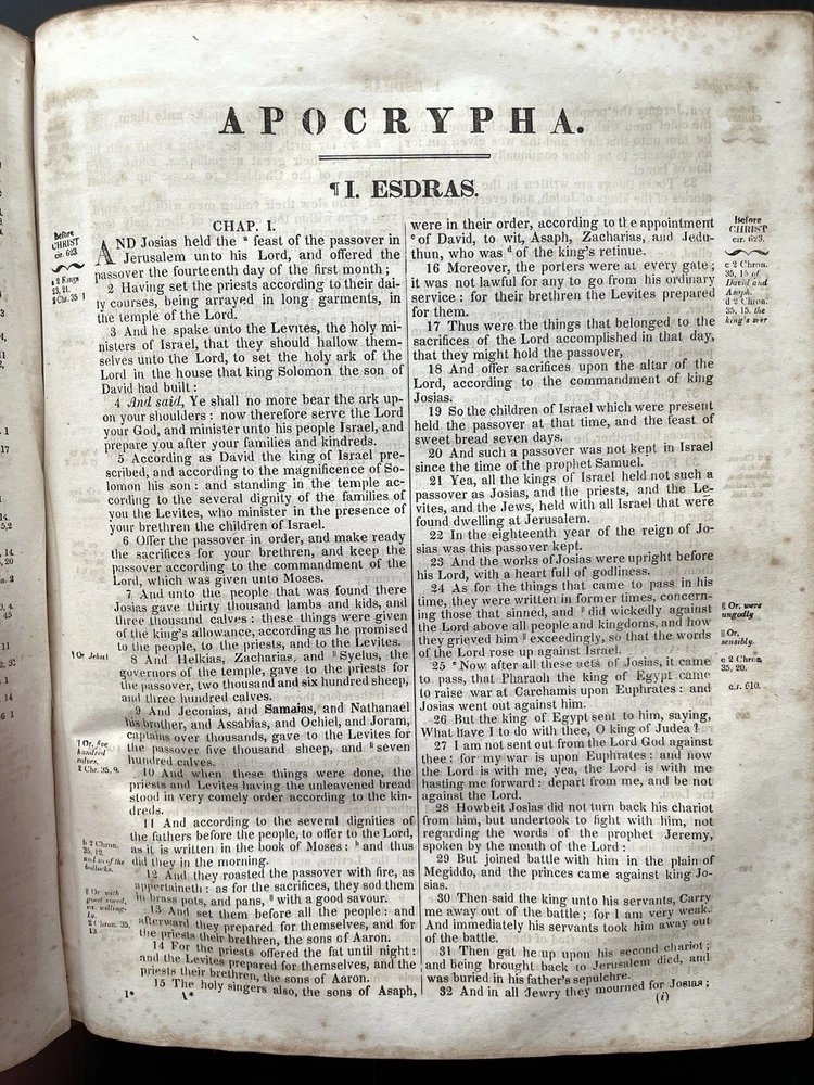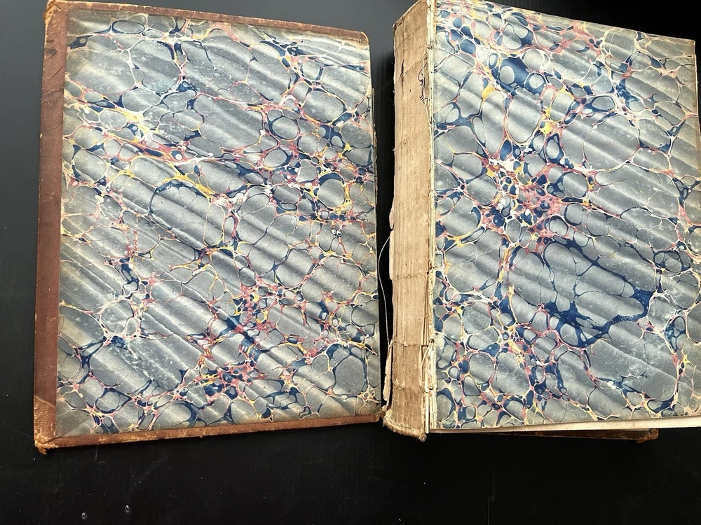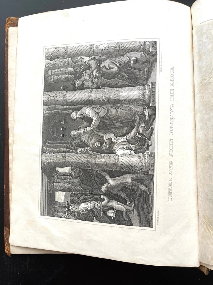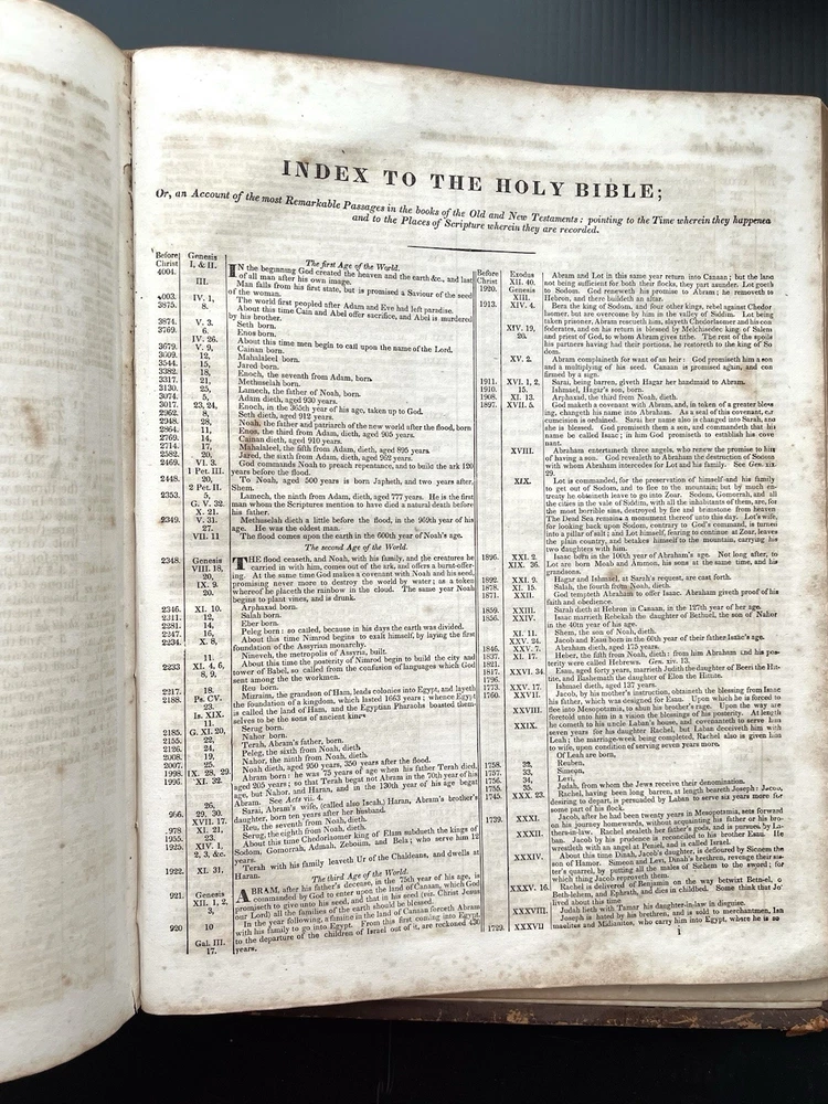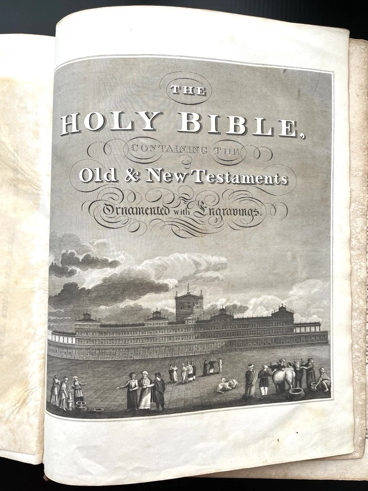 The is a rare 1851 Holy Bible printed in Philadelphia by Edward W. Miller. It features beautiful decorated leather covers and wonderful ENGRAVINGS. It also includes the Apocrypha. There are many inserts related to genealogy. Plus it includes more inserts of poems and beautiful advertising cards—as pictured. There is also a full genealogical listing of all the THOMPSON FAMILY from New Jersey—showing births, marriages, and deaths. This was a very prominent family on the East Coast. The Bible has condition with the front cover detached and some yellowing of pages, but it is complete. This is a rare gem to own.