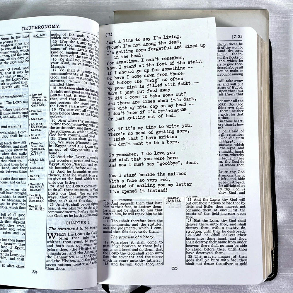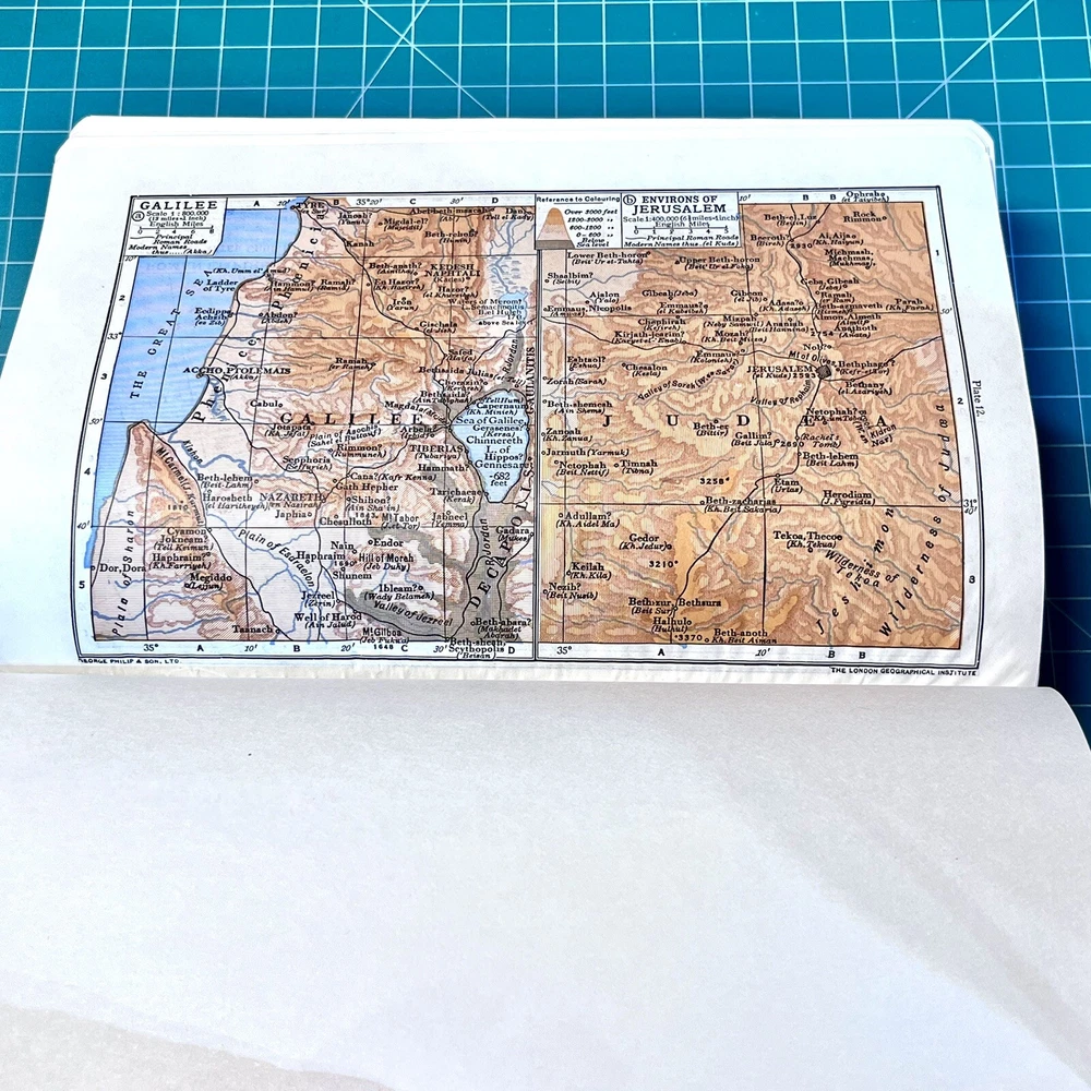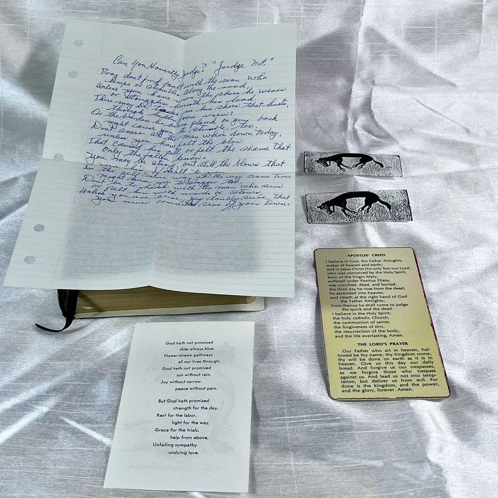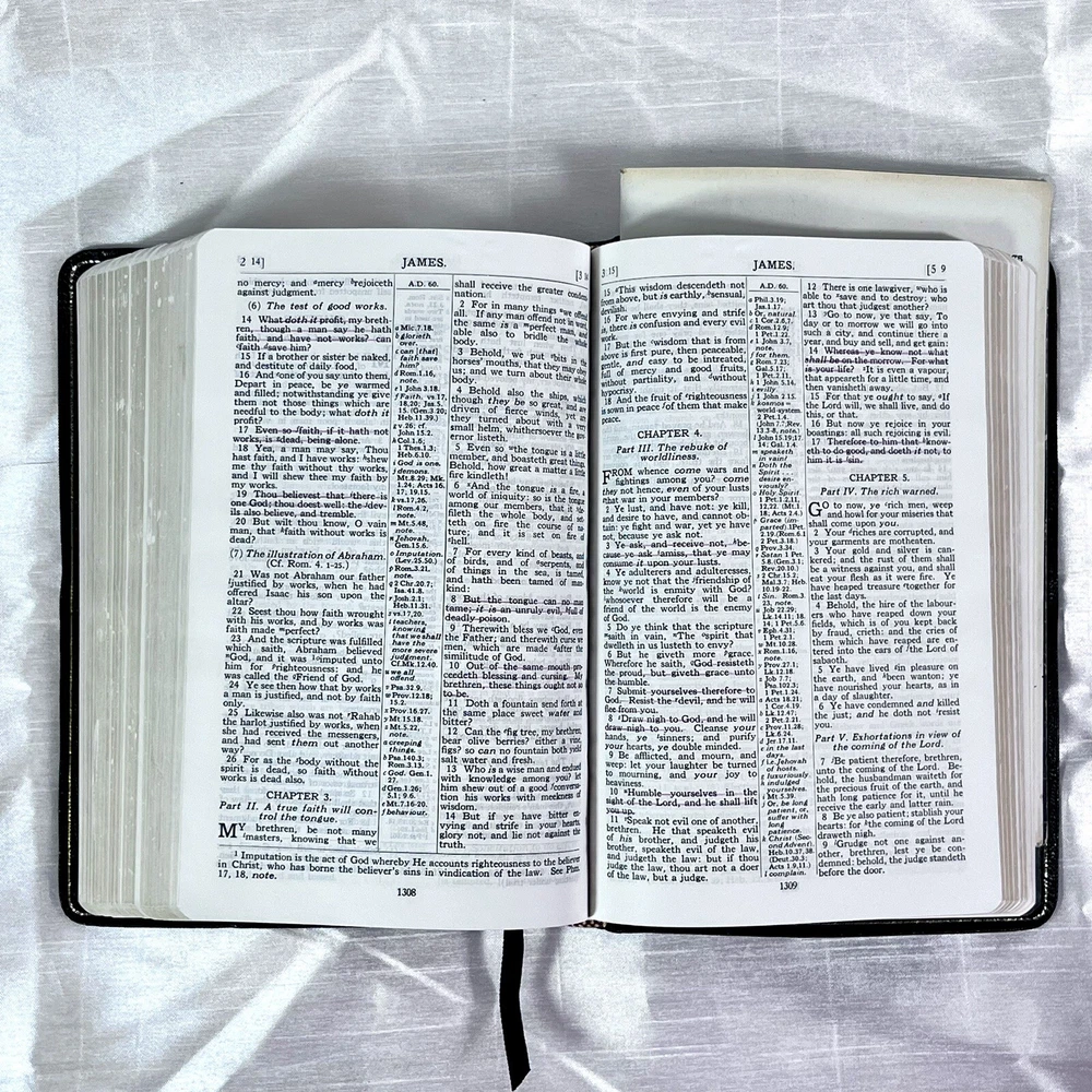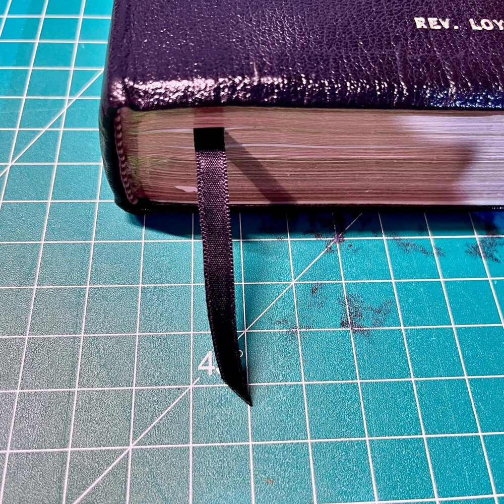 1945 The Scofield Reference Holy Bible Concordance, black leather. Owned by Rev. Loyd J. Sawyer. Schofield Facsimile Series No. 2. Contains the Old and New Testaments, authorized King James Version. Features new system of annotations, revised marginal renderings, summaries, definitions, chronology and index. Features maps of early Christian places of interest. Oxford University Press, New York publisher. Rev. Sawyer’s name is inscribed in gold on the cover of the Bible. An inside page has been written on, “To Loyd From Dorothy Father’s Day June 16, 1985.” There are some papers & notes from the pastor included. This Bible is in very good condition—the exception is some pages have passages struck through with red pencil or ink. See photos for condition details. Sold As Is.