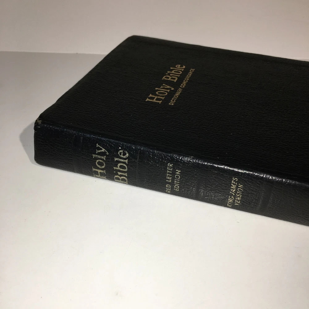 Holy Bible Dictionary Concordance Red Letter Edition King James KJV Nelson 173. No notations or markings inside, except for an inscription dedicating the Bible to a son by his dad in 1981. Beautiful overall condition - after the page that is inscribed, there are two pages that appear to have been damaged in production (maybe some glue issue with binding, etc)...photo shows it. Only 2 pages at front were affected. Condition is Used. Items ship within 3 business days via USPS Priority Mail. Please view the photos and ask any questions to determine condition and value. Consider photos as a part of the description.PLEASE READ BEFORE BIDDING: I'm not expert on anything, but I try to do my best to describe my items as accurately and honestly as I can. Please view all photo’s as they can best describe most items. Please feel free to e-mail me with any questions prior to bidding.FEEDBACK: Once you receive your item and are satisfied, please post positive feedback for me and I will do the same for you! If there is a problem with your item please let me try to work something out before leaving Negative or Neutral feedback. Keep in mind that my items are sold as-is with no returns, unless stated otherwise, but I want all of our customers to have a pleasant experience buying from us! I do refund sales under the right circumstances. I strive to take the very best photos that I possibly can - but am willing to provide more if necessary.